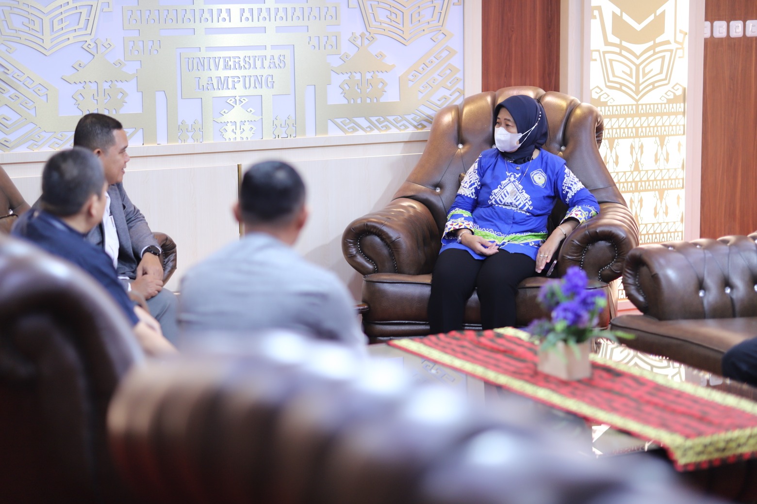 (Unila): Rektor Universitas Lampung (Unila) Prof. Dr. Ir. Lusmeilia Afriani, D.E.A., IPM., ASEAN Eng., menerima kunjungan dari delegasi Bank Syariah Indonesia (BSI) di ruang kerjanya di lantai dua Rektorat, Kamis, 28 Maret 2024.