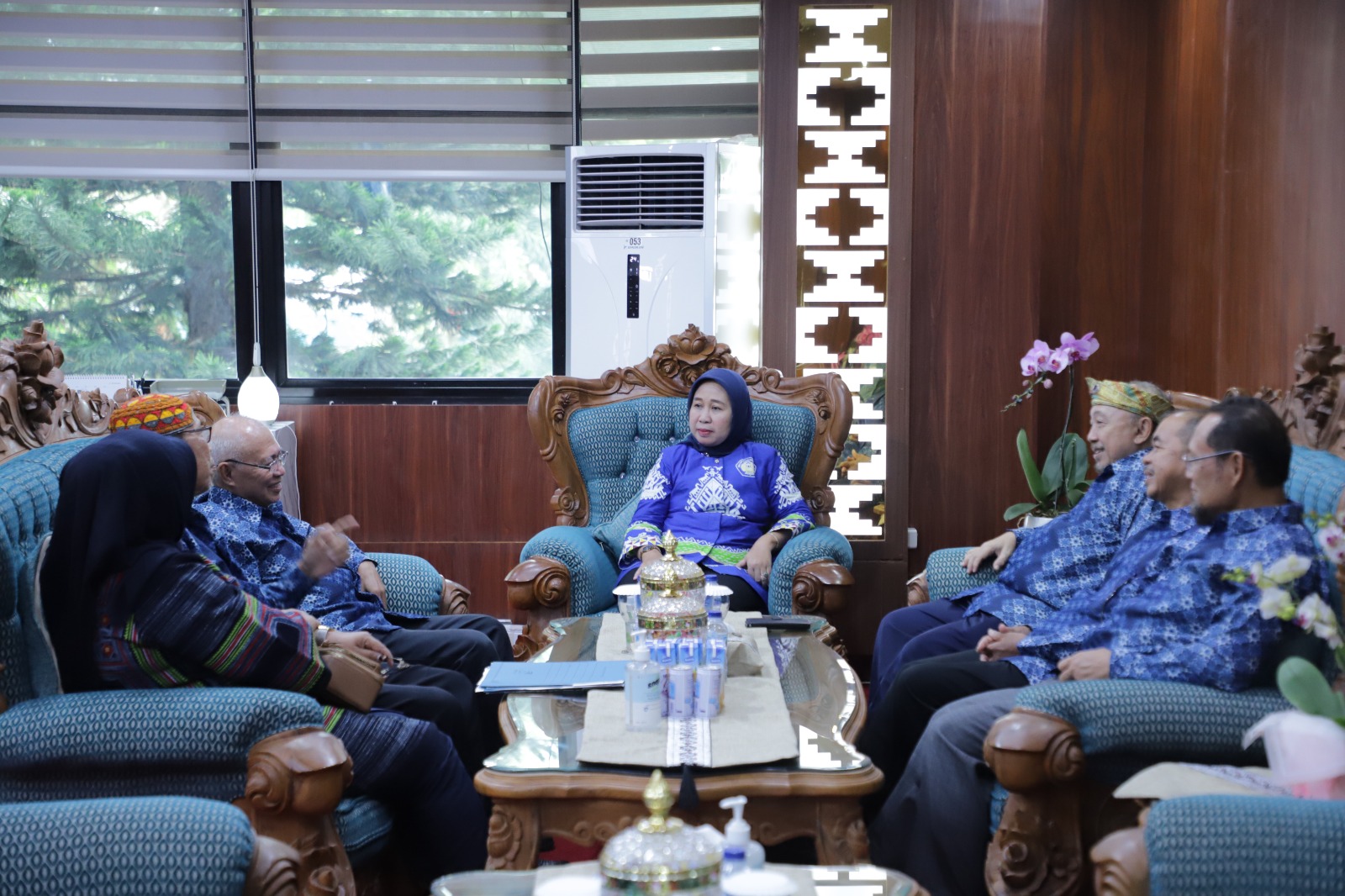 (Unila): Rektor Universitas Lampung (Unila) Prof. Dr. Ir. Lusmeilia Afriani, D.E.A., I.P.M., Asean., Eng., menerima audiensi Ketua Ikatan Keluarga Purnabhakti (IKPA) Unila Ir. Ansori Djausal, M.T., beserta jajaran. Audiensi berlangsung di ruang kerja rektor, Kamis, 3 Agustus 2023.