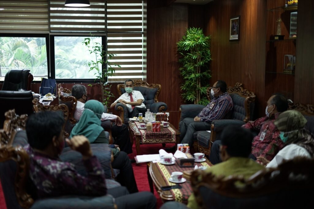 (Unila): Rektor Universitas Lampung (Unila) Prof. Dr. Karomani, M.Si., menerima kunjungan Kepala Otoritas Jasa Keuangan (OJK) Provinsi Lampung di ruang kerjanya, Rabu (11/11/2020). []