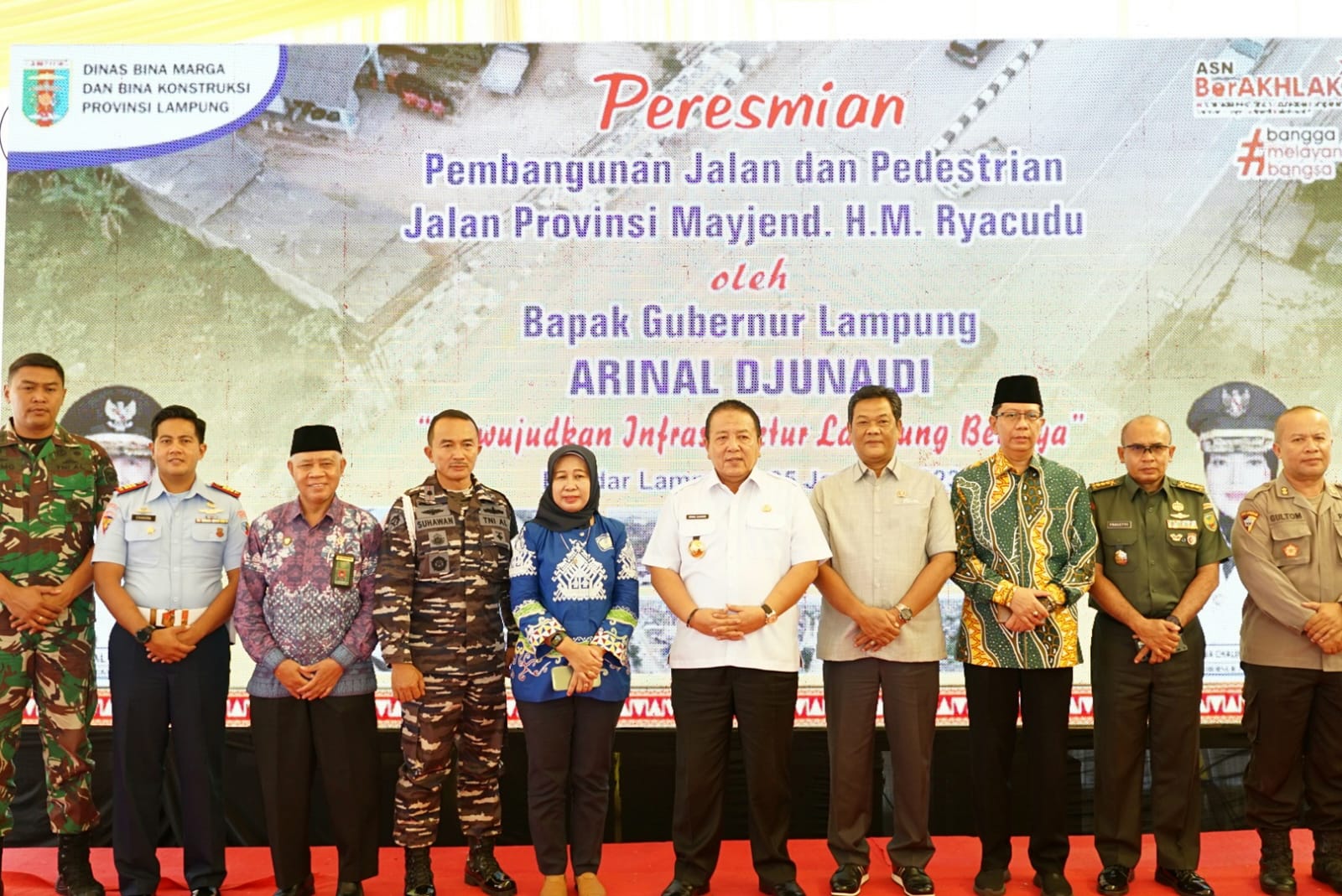 (Unila): Rektor terpilih Universitas Lampung (Unila) Prof. Ir. Lusmeilia Afriani, D.E.A., I.P.M., menghadiri peresmian pembangunan dan pedestrian jalan Provinsi Mayjend. H.M. Ryacudu oleh Gubernur Lampung Arinal Djunaidi, di Rumah Makan Sambal Seruit Buk Lin, Kamis, 4 Januari 2023.