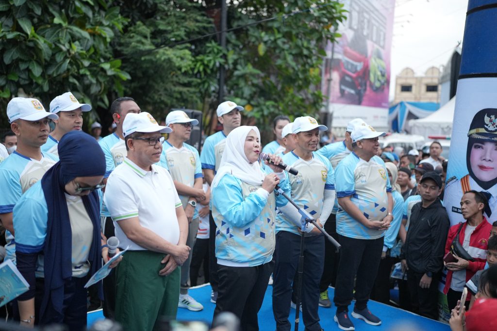 Wali Kota Bandar Lampung, Hj. Eva Dwiana, dalam sambutannya menyampaikan bahwa kegiatan jalan sehat ini merupakan simbol kebersamaan dan semangat gotong royong masyarakat Kota Bandar Lampung dalam memperingati hari jadi kota tercinta.