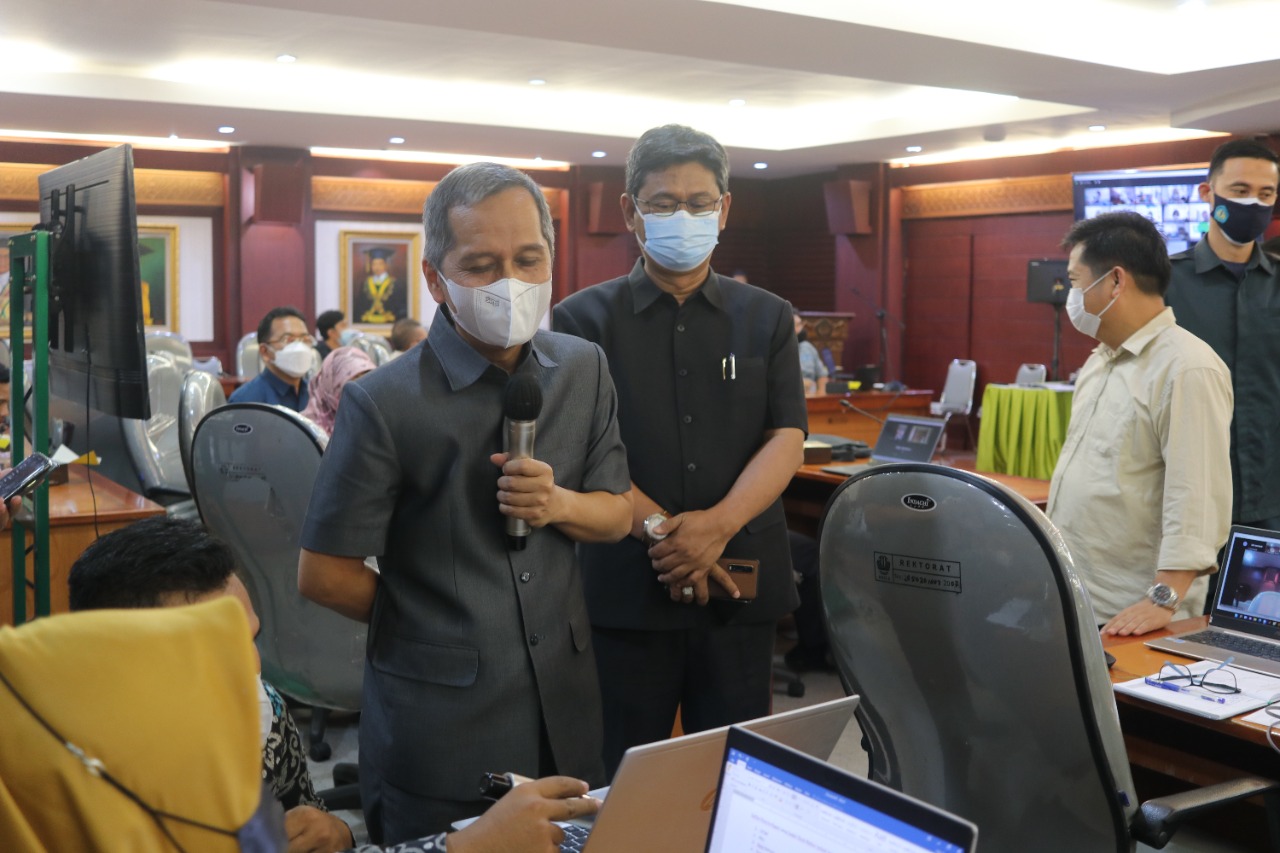 (Unila): Rektor Universitas Lampung (Unila) Prof. Dr. Karomani M.Si., menggelar inspeksi mendadak (sidak) secara virtual yang berlangsung dari ruang sidang utama Rektorat Unila, Selasa, 1 Maret 2022.