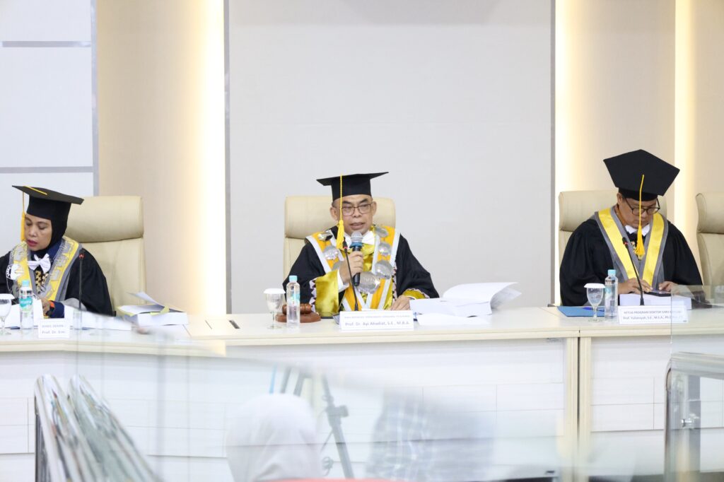 Adapun penguji internal terdiri dari Prof. Dr. Marselina, S.E., M.P.M. dan Dr. Heru Wahyudi, S.E., M.Si. Ujian promosi ini turut didampingi Promotor Prof. Dr. Ambya, S.E., M.Si., dan Ko-Promotor Prof. Dr. Nairobi, S.E., M.Si.
