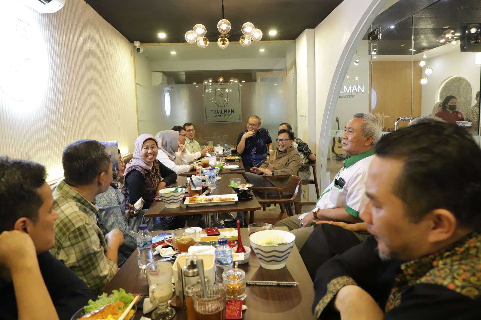 (Unila): Rektor Unila Prof. Dr. Ir. Lusmeilia Afriani, DEA., IPM, memimpin sarasehan para pimpinan Universitas Lampung di Trailman Café & Eatry, Bandar Lampung, Rabu Malam, 1 Maret 2023.