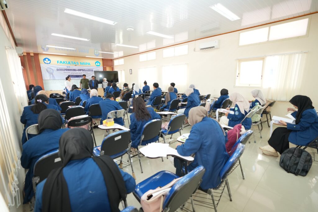 Ketua Pelaksana ONMIPA Unila 2026, Dr. Junaidi, S.Si., M.Sc., merincikan sebaran peserta yakni: 64 mahasiswa di bidang Biologi, 56 di bidang Matematika, 45 di bidang Kimia, dan 39 di bidang Fisika.