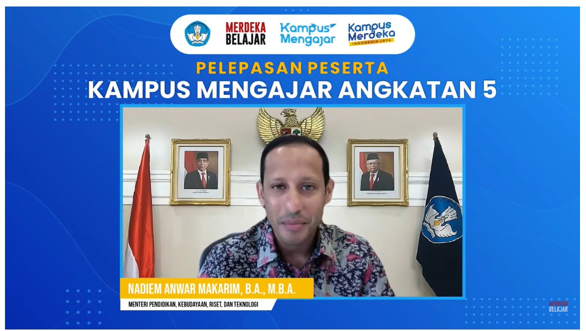 Kementerian Pendidikan, Kebudayaan, Riset, dan Teknologi (Kemendikbudristek) menggelar seremoni pelepasan 21.045 mahasiswa Program Kampus Mengajar Angkatan 5 di 5.093 sekolah. Keberanian para mahasiswa mengikuti Program Kampus Mengajar guna berperan lebih besar dalam peningkatan kualitas pendidikan di Indonesia, mendapat apresiasi dari Menteri Pendidikan, Kebudayaan, Riset, dan Teknologi (Mendikbudristek), Nadiem Anwar Makarim.