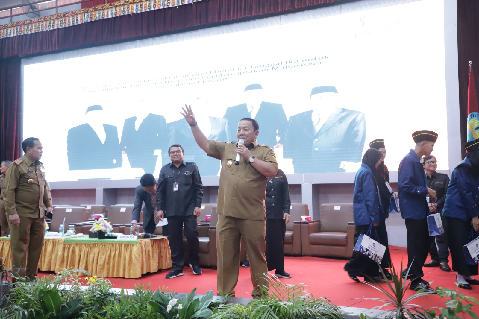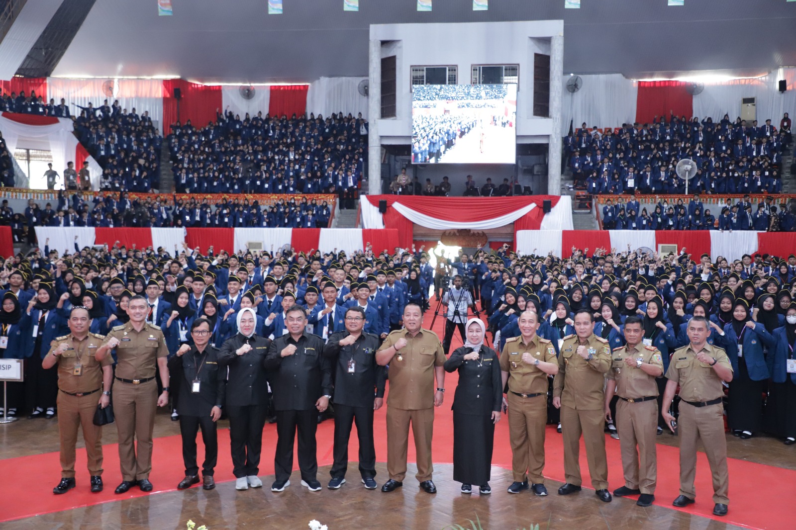 PKKMB hari kedua diikuti 9.165 mahasiswa yang hadir secara luring dan daring melalui platform Zoom, serta disiarkan secara langsung melalui kanal YouTube BAK Unila.