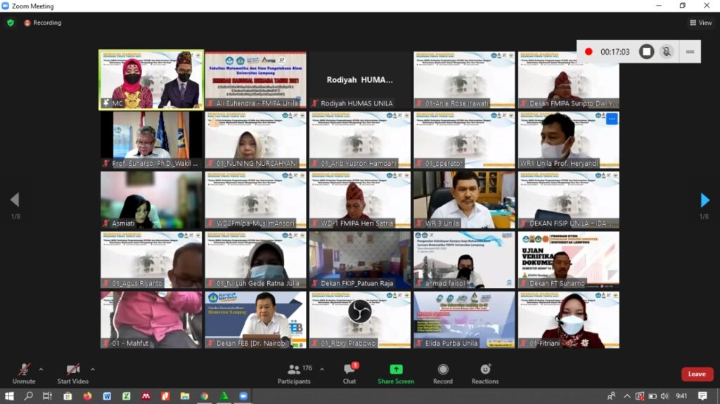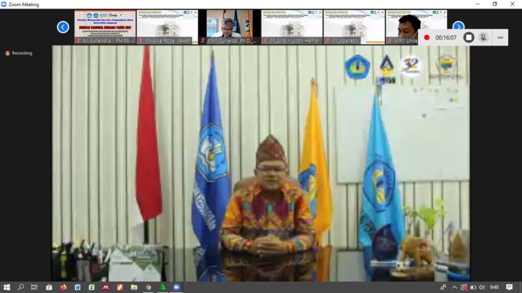 (Unila): Meriahkan Dies Natalis Universitas Lampung (Unila) ke 56, Fakultas Matematika dan Ilmu Pengetahuan Alam (FMIPA) selenggarakan Seminar Nasional Bersama FMIPA Tahun 2021.
