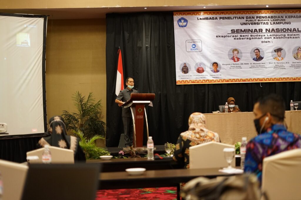 (Unila): Pusat Penelitian Budaya Lampung Lembaga Penelitian dan Pengabdian Kepada Masyarakat (LPPM) Universitas Lampung (Unila) menggelar seminar nasional bertajuk “Eksplorasi Seni Budaya Lampung dalam Bingkai Keberagaman dan Kebinekaan”. Kegiatan yang dihadiri 40 peserta ini diadakan di ruang pertemuan Hotel Emersia, Selasa (27/10/2020).