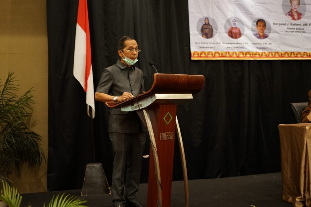 Ketua LPPM Unila Dr. Lusmeilia Afriani, D.E.A., saat menyampaikan laporan mengatakan, kegiatan ini salah satu implementasi komitmen Unila melestarikan budaya Lampung agar makin dikenal di kancah nasional dan dunia.