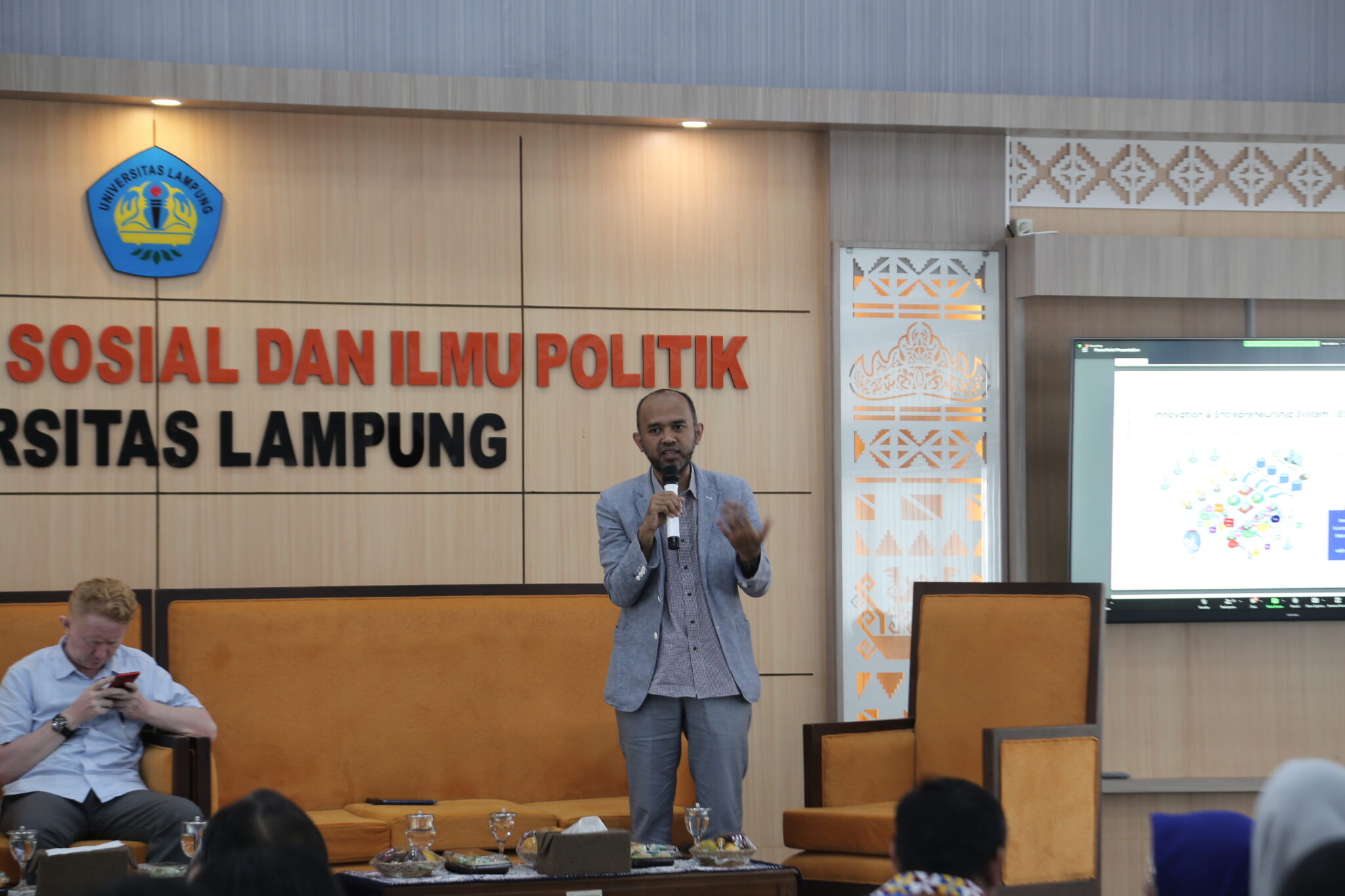 Dekan FISIP Unila Dr. Ida Nurhaida, M.Si., dalam sambutanya menyampaikan, kolaborasi Heptahelix menggambarkan kerja sama antara tujuh sektor utama, yaitu pemerintah, akademisi, industri, masyarakat sipil, media, masyarakat, dan agama, menjadi landasan yang kuat untuk menciptakan pembangunan yang holistik dan berkelanjutan.