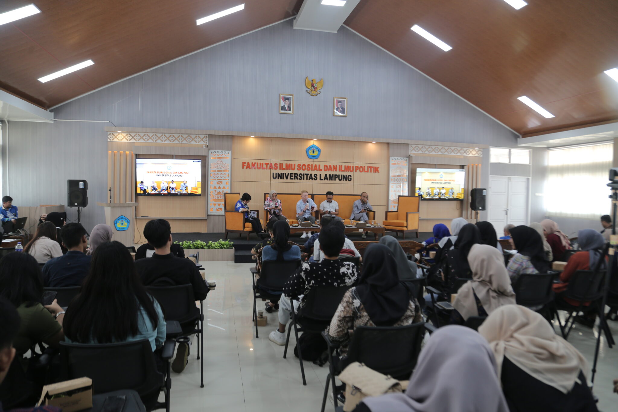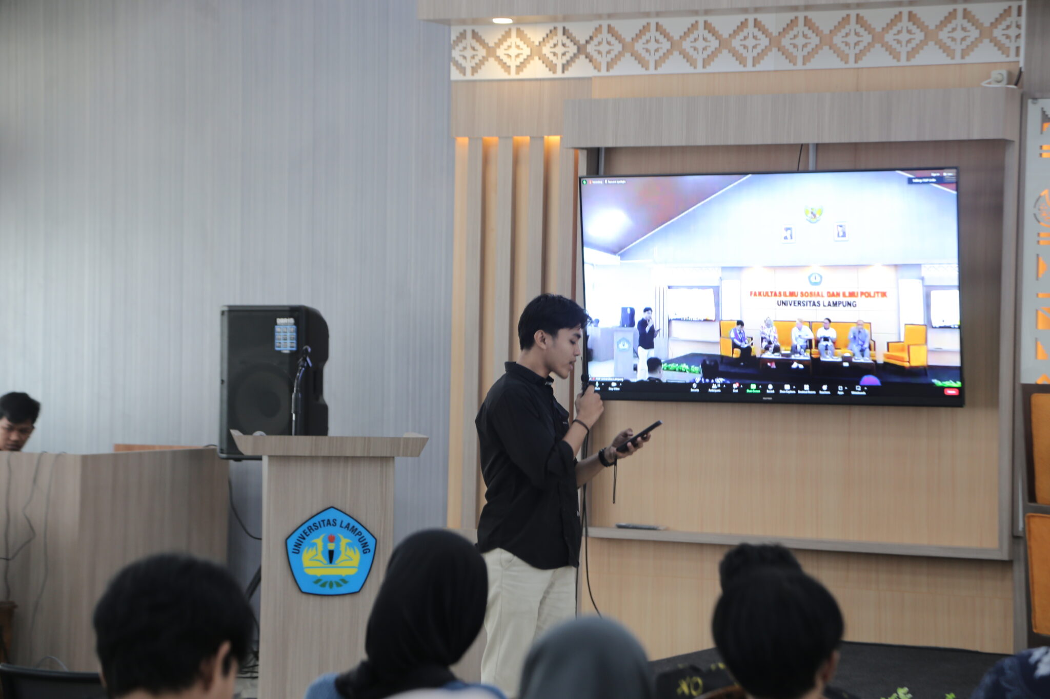 Kegiatan berlangsung secara luring dan daring di Aula Gedung B 3.1 FISIP Unila dan diikuti 80 pemakalah dari berbagai daerah di Indonesia.