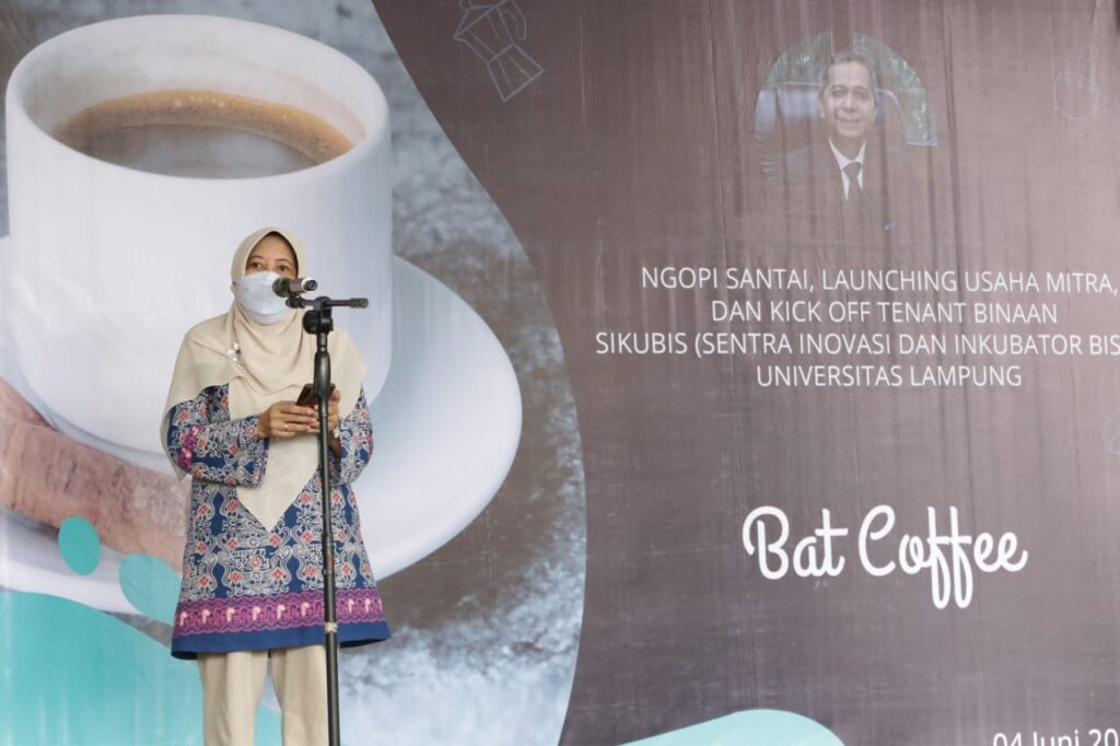 Peluncuran produk Bat Coffee yang merupakan usaha mitra binaan Sikubis Unila ini dilakukan langsung Rektor Unila Prof. Dr. Karomani, M.Si., Jumat pagi, 4 Juni 2021, di halaman depan Gedung Rektorat Unila. Kegiatan dihadiri para wakil rektor dan sivitas akademika Unila.