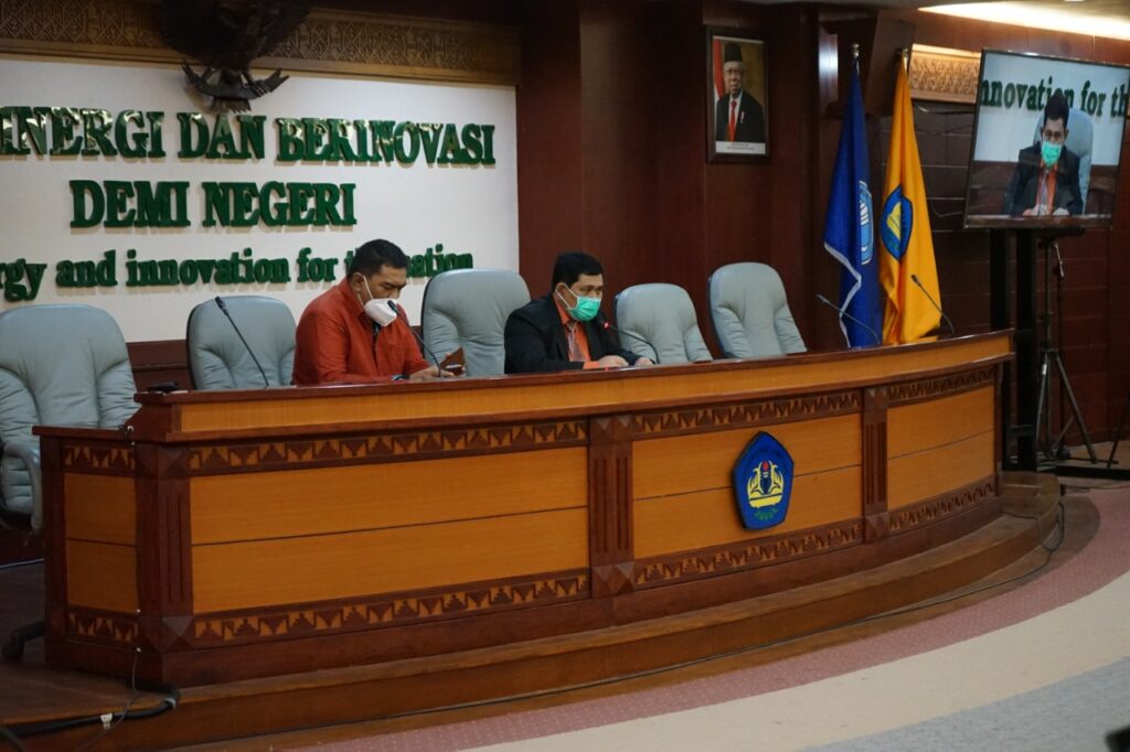 Selain Wakil Rektor Bidang Kemahasiswaan dan Alumni Prof. Dr. Yulianto, M.S., kegiatan yang berlangsung di ruang sidang utama lantai 2 Rektorat dan disaksikan live via Zoom ini diikuti Kepala UPT PKK Diky Hidayat, S.Si., M.Sc., beserta jajaran pimpinan di lingkungan kampus.