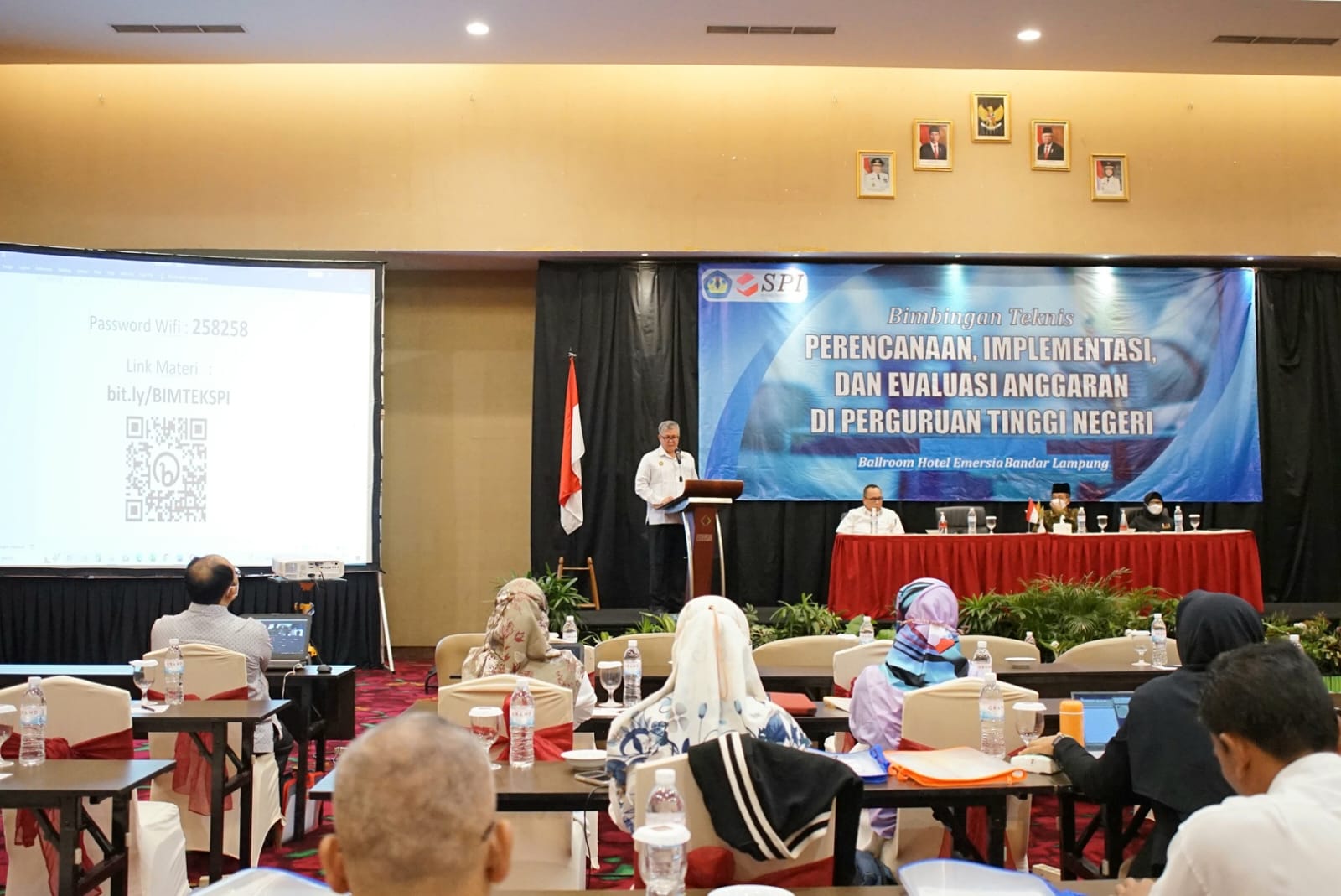(Unila): Satuan Pengendalian Internal (SPI) Universitas Lampung (Unila) menggelar Bimbingan Teknis (Bimtek) Perencanaan, Implementasi, dan Evaluasi, Anggaran Perguruan Tinggi, di Ballroom Hotel Emersia Bandarlampung, Rabu, 2 November 2022.