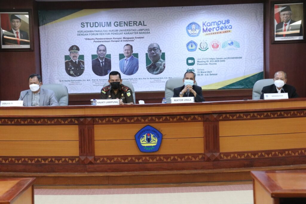 Studium General Orkestra Pemberantasan Korupsi merupakan acara yang diinisiasi Fakultas Hukum Universitas Lampung bekerja sama dengan Forum Rektor Penguat Karakter Bangsa. Acara ini diselenggarakan secara offline di ruang sidang utama lantai dua Rektorat dan secara online melalui Zoom meeting.