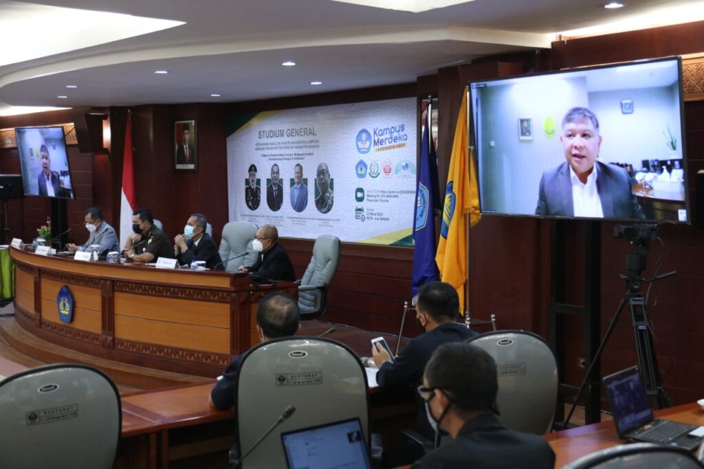 Studium general turut dihadiri Wakil Kepala Kejaksaan Tinggi Lampung Edyward Kaban, S.H., M.H., para wakil rektor Unila, ketua senat, para dekan, ketua lembaga di lingkungan Unila, dan anggota Forum Rektor Penguat Karakter Bangsa. [Humas/Angel]