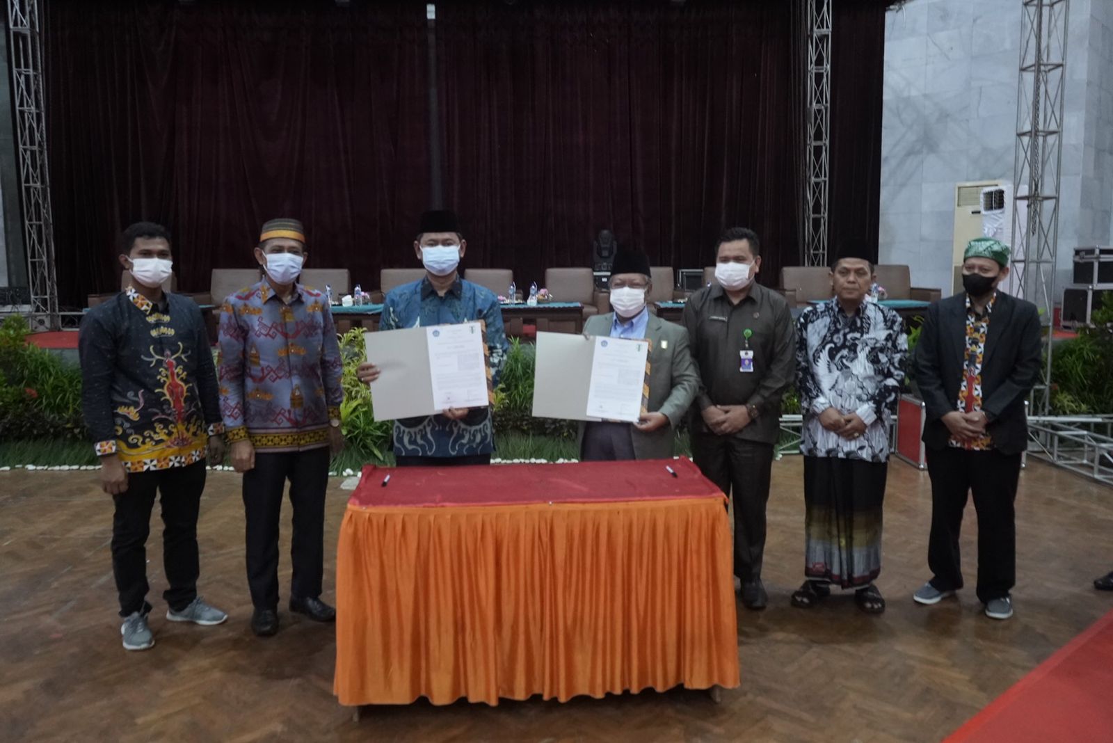 Selain melakukan studium generale pada kegiatan ini juga dilaksanakan penandatanganan Nota Kesepahaman antara Unila dan Forum Kerukunan Umat Beragama Provinsi Lampung. [Humas/Andri]