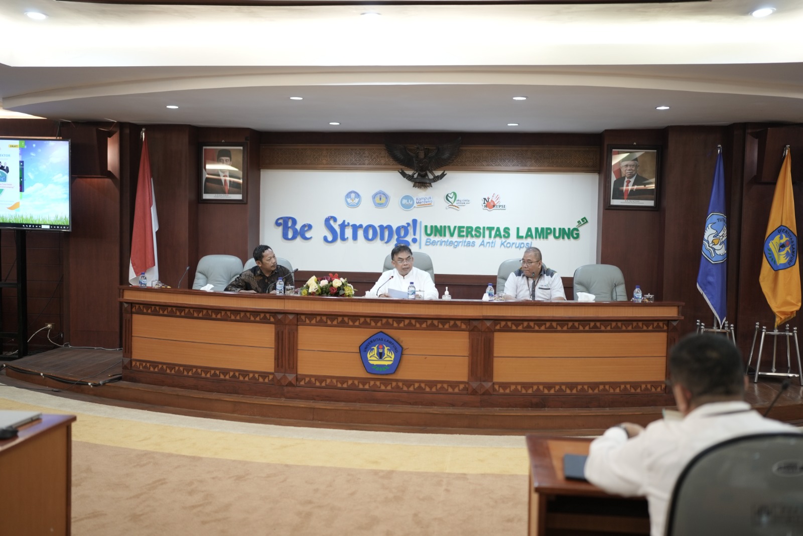 Acara yang berlangsung di ruang sidang lantai 2, Rektorat, Rabu 23 Agustus 2023 ini dihadiri Wakil Rektor PKTIK Dr. Ayi Ahadiyat, S.E., MBA., jajaran pimpinan tingkat fakultas, Direktur Pascasarjana Unila, ketua lembaga dan kepala unit dan tim penyusun Laporan Rektor.