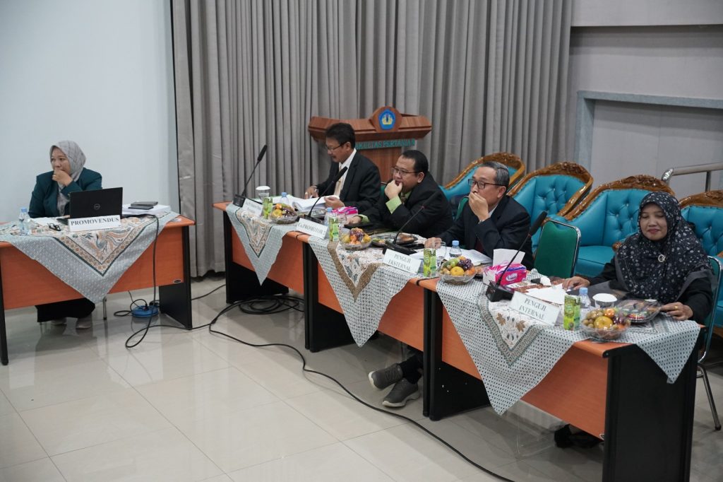 Sidang ini dipimpin oleh Prof. Suripto dan dihadiri Prof. Dr. Ir. Slamet Budi Yuwono, M.S., Ketua Program Studi Doktor Ilmu Pertanian. Dalam sambutannya, Prof. Suripto menekankan pentingnya penelitian yang inovatif dan aplikatif dalam mendukung kemajuan sektor pertanian di Indonesia.