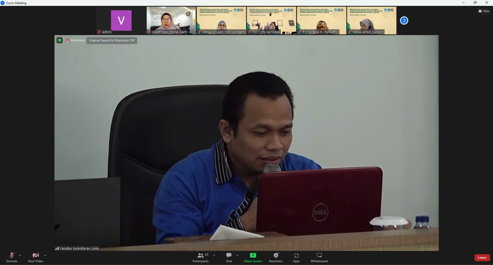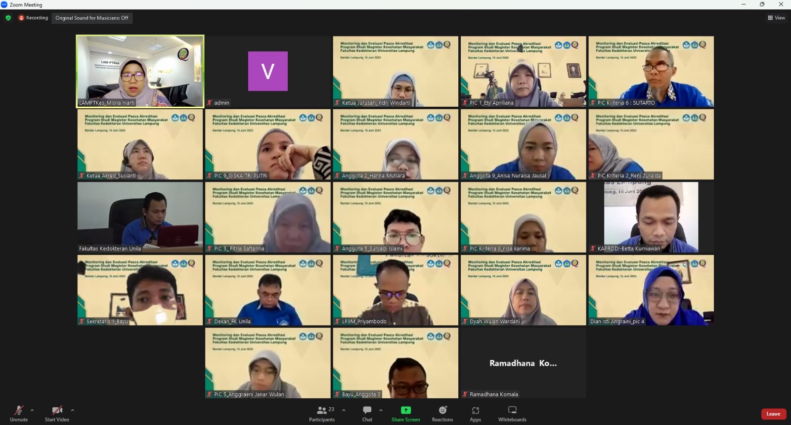 (Unila): Tim Asesor Lembaga Akreditasi Mandiri Perguruan Tinggi Kesehatan (LAM-PTKes) melakukan visitasi akreditasi secara daring ke Program Studi Magister Kesehatan Masyarakat Fakultas Kedokteran (FK) Universitas Lampung (Unila), Kamis, 15 Juni 2023.