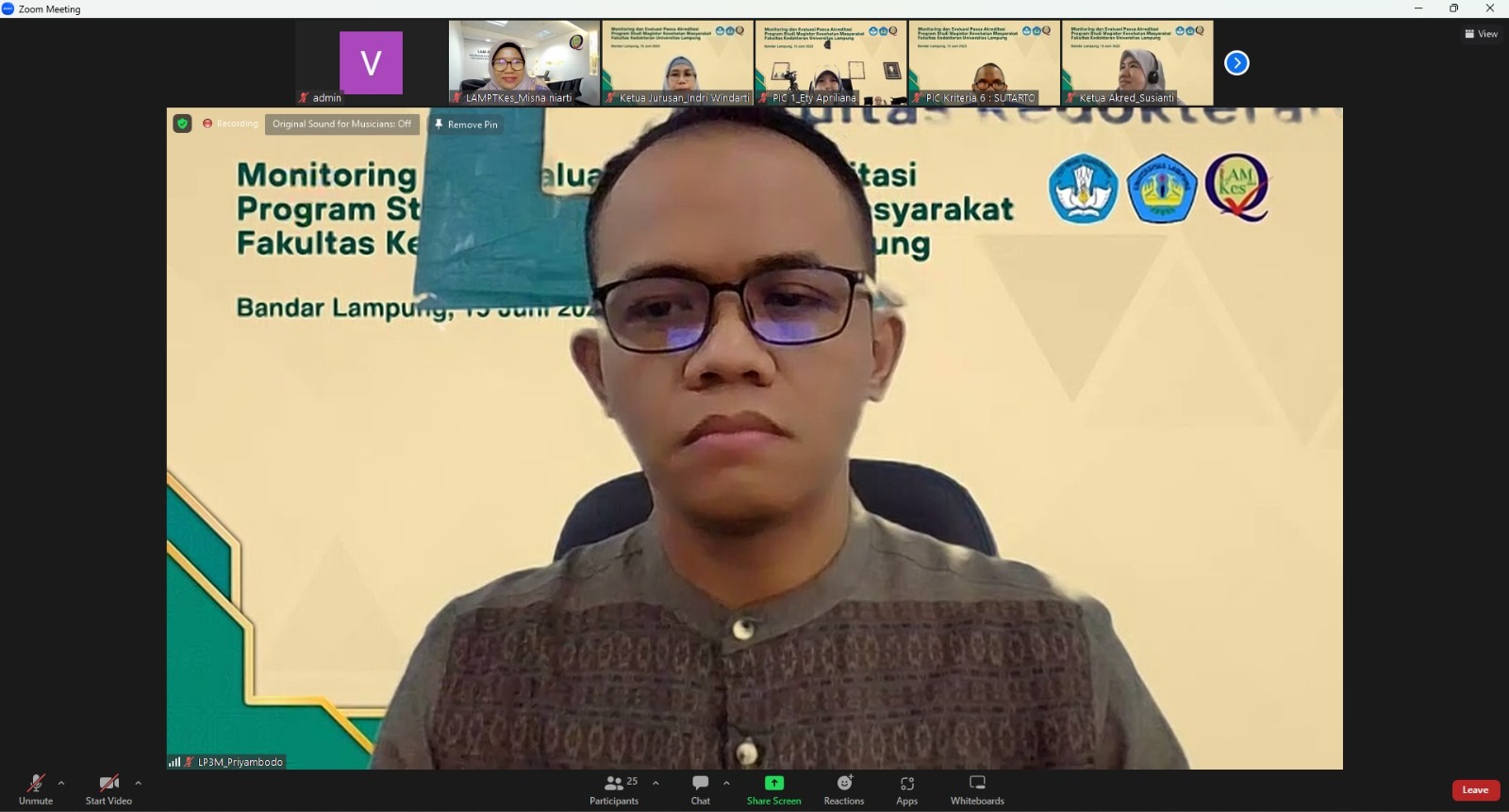 Visitasi ini turut diikuti tim FK Unila secara luring dari Gedung A FK Unila. Hadir juga dalam kegiatan ini, Ketua Program Studi Magister Kesehatan Masyarakat Dr. dr. Betta Kurniawan, M. Kes., Ketua Akreditasi FK Unila Dr. dr. Susianti, M. Sc., Kapus Akreditasi Nasional dan Internasional LP3M Priyambodo, M.Sc., jajaran dosen dan anggota penjaminan mutu FK Unila.*