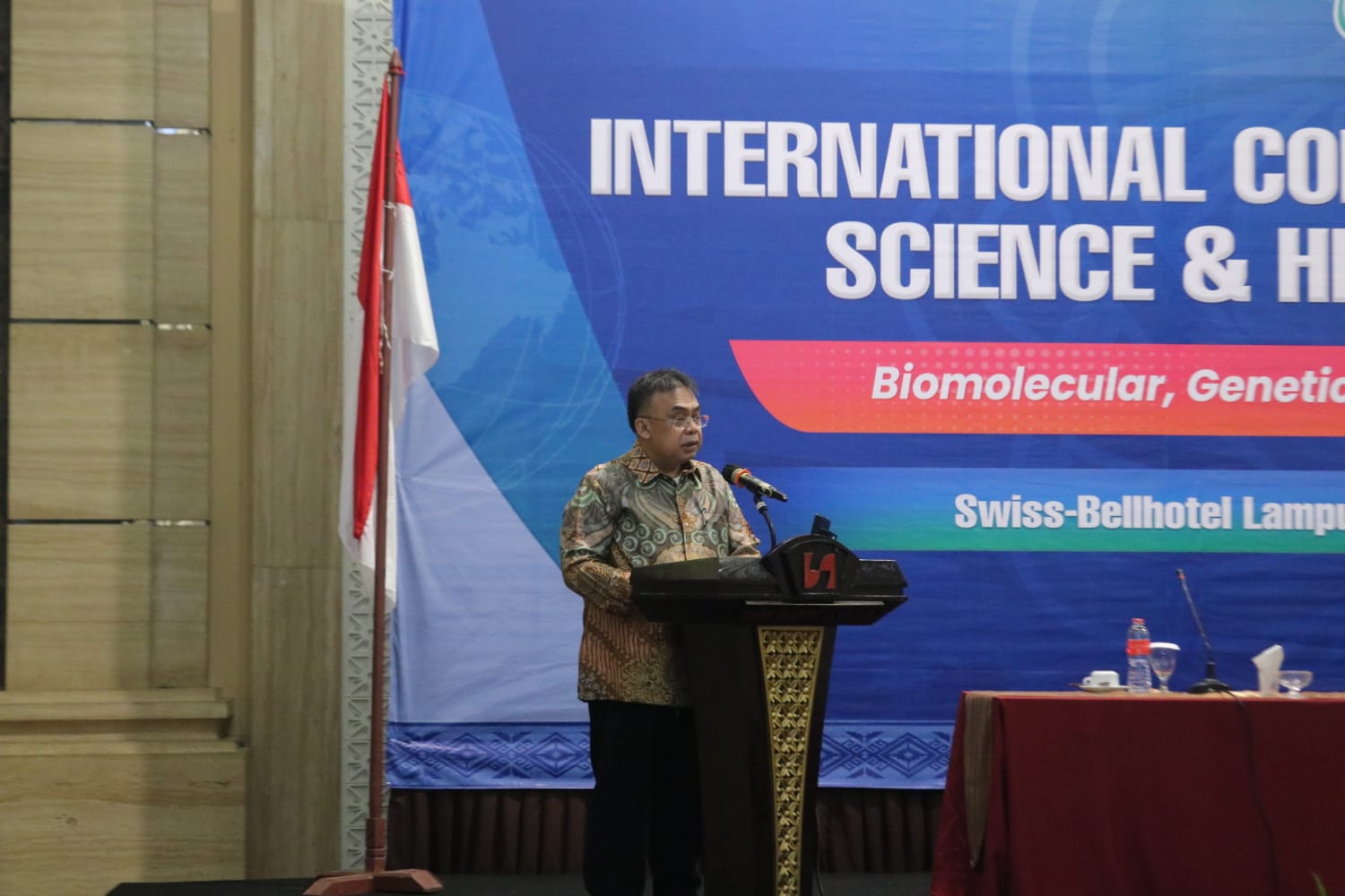 Kegiatan yang berlangsung di Swiss-Belhotel Lampung ini membahas tema “Biomolecular, Genetic, and Degenerative Diseases“. Wakil Rektor bidang Perencanaan, Kerja sama, dan TIK Unila Dr. Ayi Ahadiyat, S.E., M.B.A., mewakili Rektor Unila, secara resmi membuka konferensi ini.