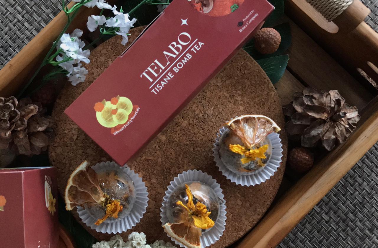 TELABO merupakan singkatan dari Tisane Bomb Tea. Pemilihan kata bomb karena isomalt yang berbentuk bulat akan mencair saat ditambahkan air panas dan membuat tisane keluar dari dalam bulatan isomalt.