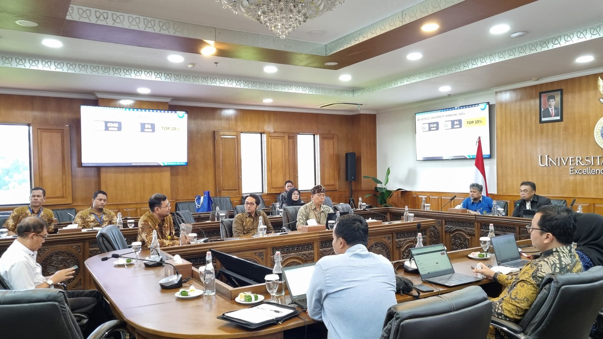 Kunjungan dilangsungkan di ruang sidang pleno Balai RUA, lantai IV kantor manajemen Unair, dalam rangka benchmarking pemeringkatan THE dan penulisan sustainability report.