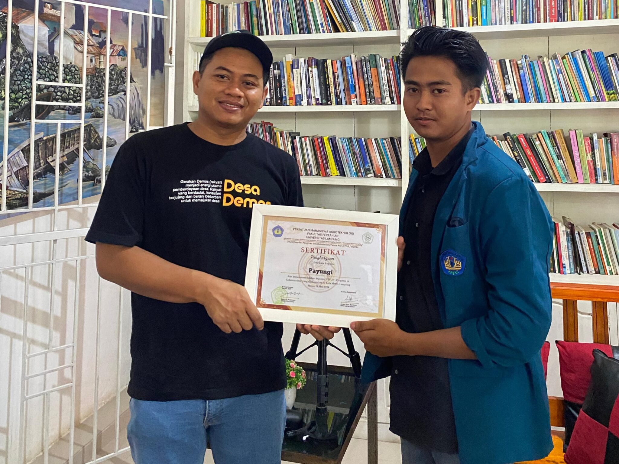 (Unila): Persatuan Mahasiswa Agroteknologi (Perma AGT) Fakultas Pertanian (FP) Universitas Lampung (Unila) melakukan kunjungan ke Kampung Kreatif Payungi, di Yosomulyo, Kota Metro, pada Minggu, 12 Mei 2024.