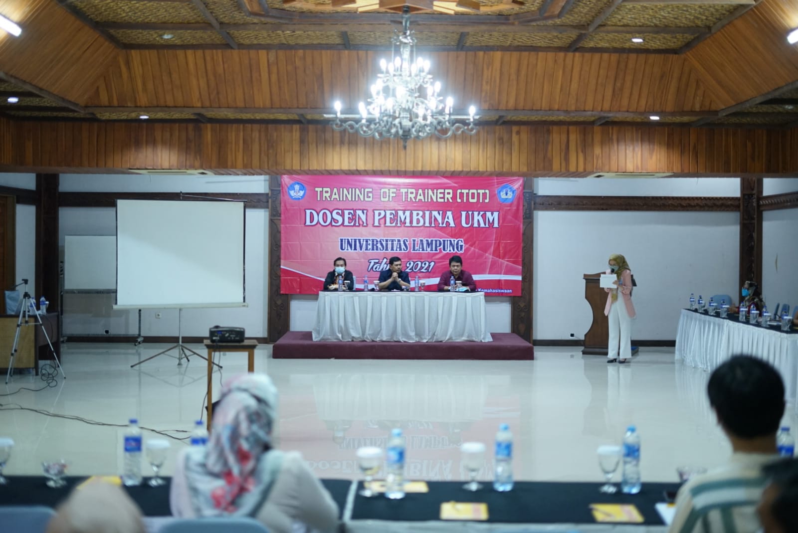 (Unila): Bagian Kemahasiswaan Universitas Lampung (Unila) menyelenggarakan Training of Trainers (ToT) Dosen Pembina Kemahasiswaan dengan tema “Kebijakan Pembinaan Kemahasiswaan dan Alumni Unila”.