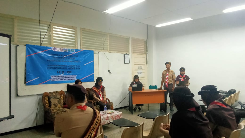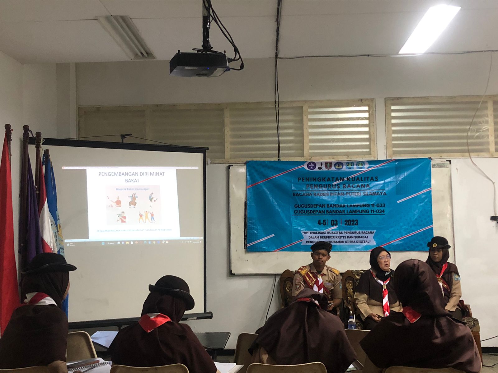 (Unila): UKM Pramuka Universitas Lampung (Unila) Racana Raden Intan – Puteri Silamaya Gugusdepan Bandar Lampung 11.033 – 11.034 melaksanakan kegiatan Peningkatan Kualitas Pengurus Racana (PKPR) dengan mengusung tema “Optimalisasi Kualitas Pengurus Racana dalam Berpikir Kritis dan Sebagai Penggerak Perubahan di Era Digital”.