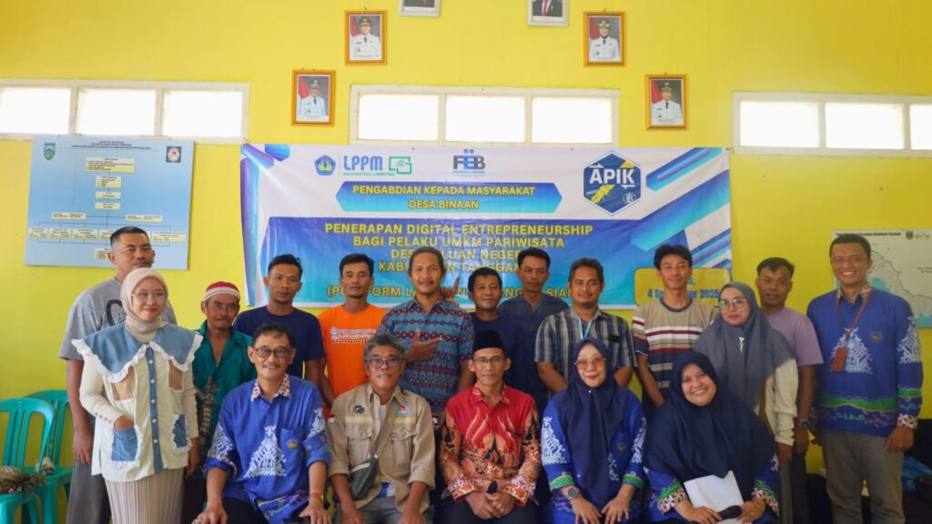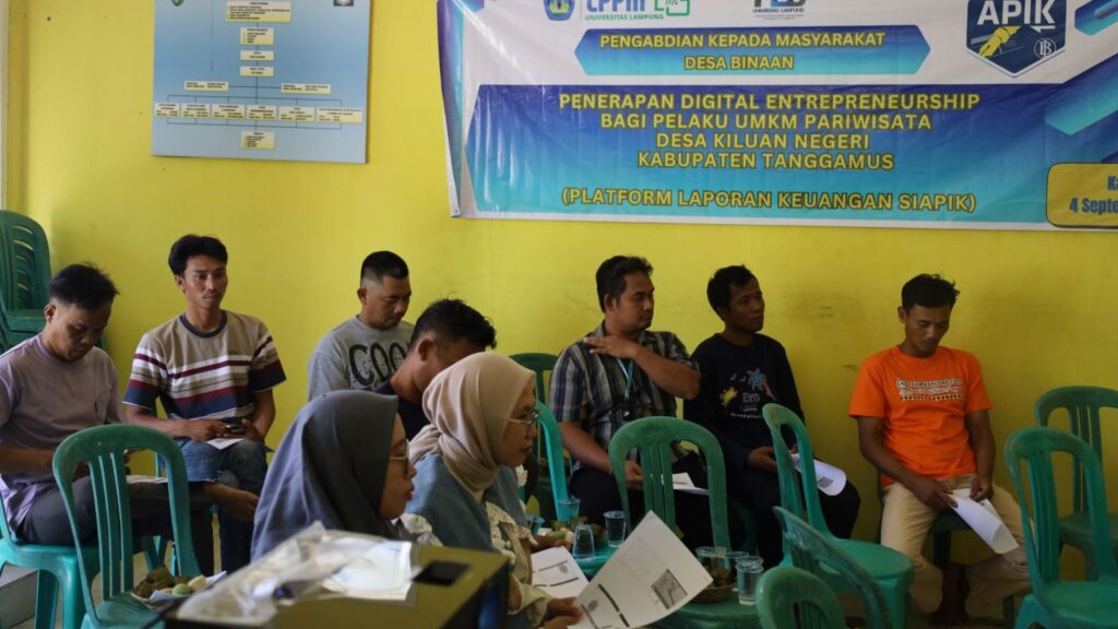 (Unila): Tim dosen Fakultas Ekonomi dan Bisnis (FEB) Universitas Lampung kembali menghadirkan inovasi dalam Program Pengabdian kepada Masyarakat (PKM) kenalkan sistem pelaporan keuangan digital di di Desa Negeri Kiluan, Kecamatan Kelumbayan, Kabupaten Tanggamus, Lampung pada Kamis, 4 September 2025.