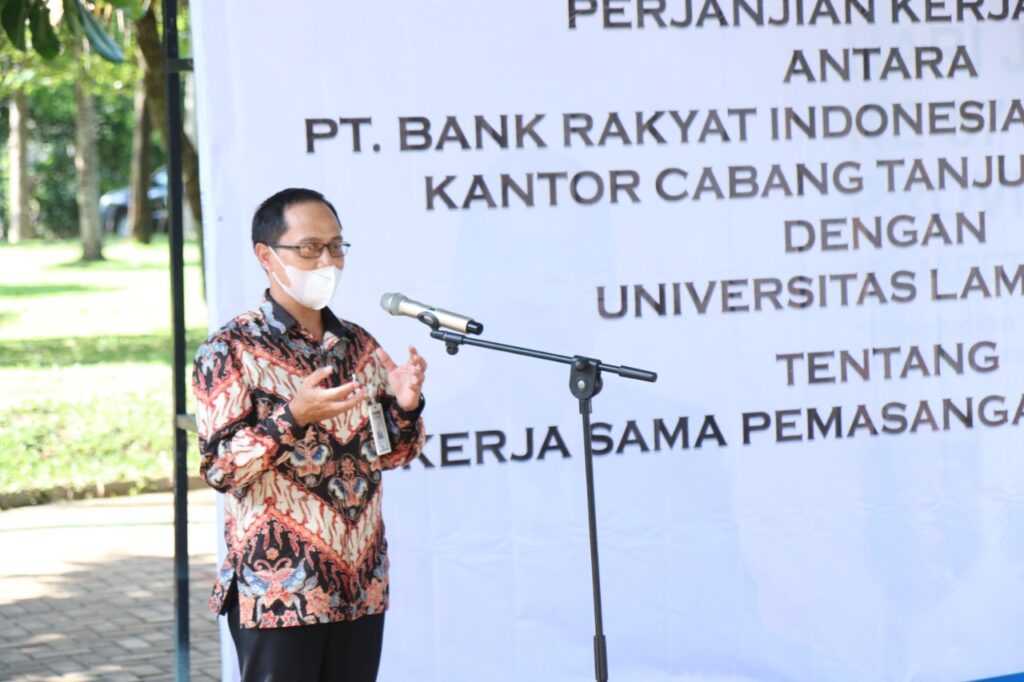 Kegiatan yang berlangsung di pelataran parkir Kolam Renang Unila, Jumat, 26 Maret 2021 ini turut dihadiri Wakil Rektor BUK Prof. Dr. dr. Asep Sukohar, S.Ked., M.Kes., Wakil Rektor Bidang PKTIK Prof. Suharso, Ph.D., kabag RTC Kanwil Lampung, beserta jajaran di lingkungan kampus dan Bank BRI Tanjungkarang.