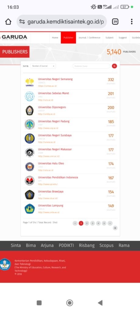 (Unila): Universitas Lampung (Unila) kembali mencatatkan prestasi membanggakan di bidang publikasi ilmiah dengan menempati posisi 10 besar perguruan tinggi nasional berdasarkan jumlah jurnal yang terindeks dalam Garuda (Garba Rujukan Digital), sistem indeksasi resmi milik Kemdiktisaintek.