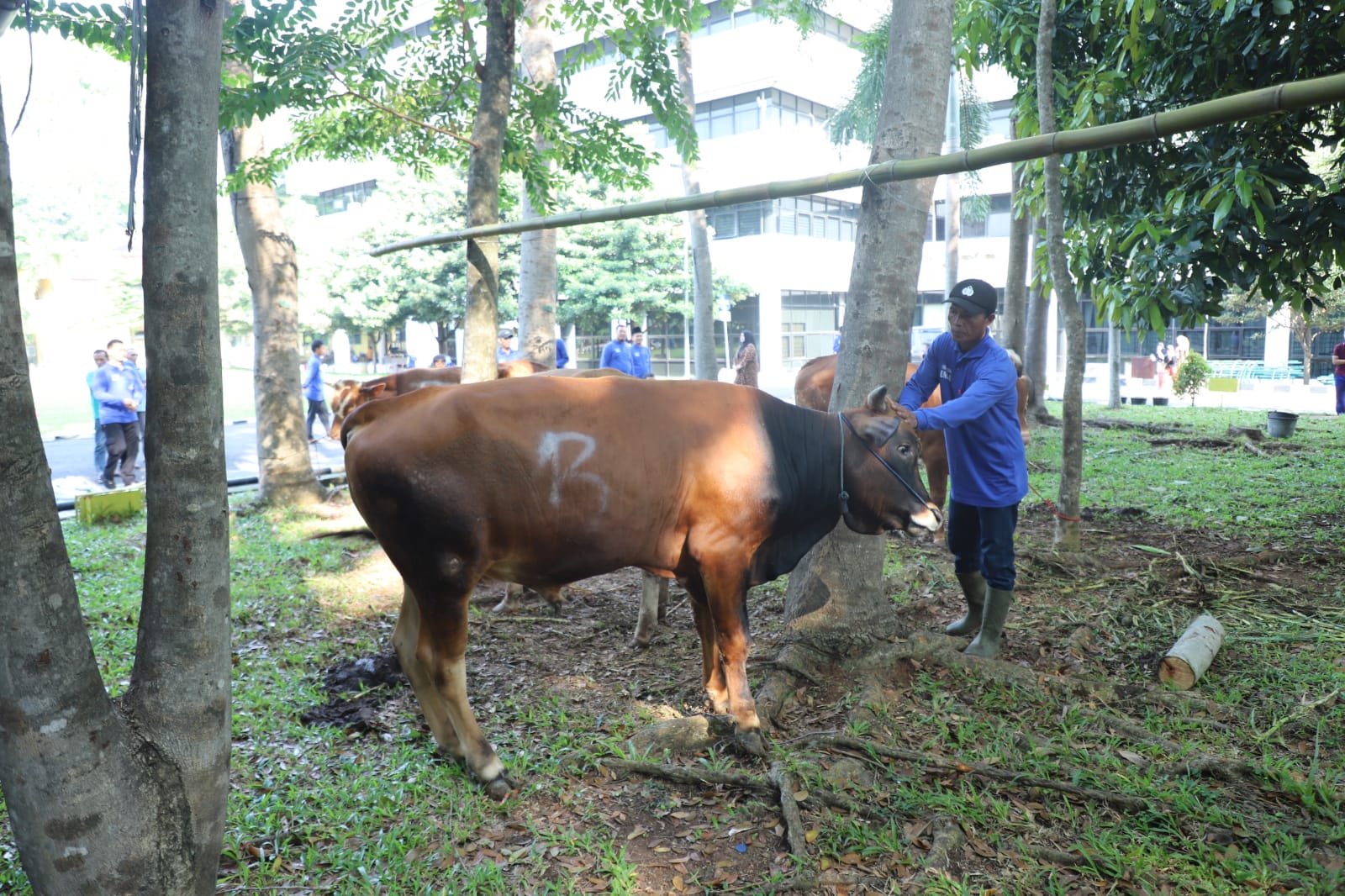 Adapun hewan kurban tersebut di antaranya berasal dari pimpinan Unila, Rektor beserta jajaran, UPT, delapan fakultas, hingga perusahaan mitra Unila antara lain PGN, Telkom, BSI, dan BRI.
