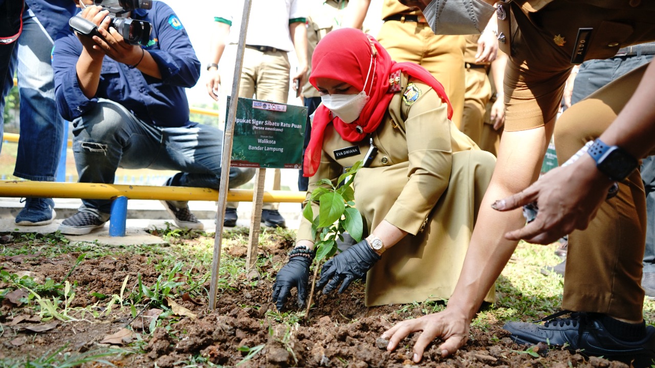 Penghijauan RTH berupa penanaman bibit kayu-kayuan dan Multi Purpose Tree Special (MPTS) ini secara khusus juga dihadiri Wali Kota Bandar Lampung Eva Dwiyana, M.Si., didampingi Kepala Dinas Kehutanan Provinsi Lampung Ir. Yanyan Ruchyansyah, M.Si., serta perwakilan Badan Pengelolaan Daerah Aliran Sungai dan Hutan Lindung (BPDASHL) Way Seputih, Way Sekampung, yang diketuai Ir. Idi Bantara, S.Hut., M.Si.