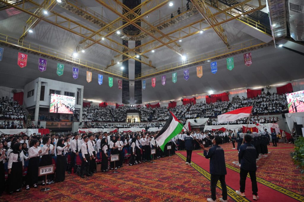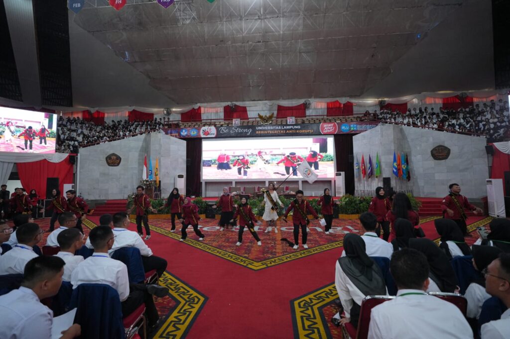 (Unila): Universitas Lampung (Unila) menggelar Pengenalan Kehidupan Kampus Mahasiswa Baru (PKKMB) 2025 hari kedua di Gedung Serbaguna (GSG) Unila, pada Jumat, 15 Agustus 2025.
