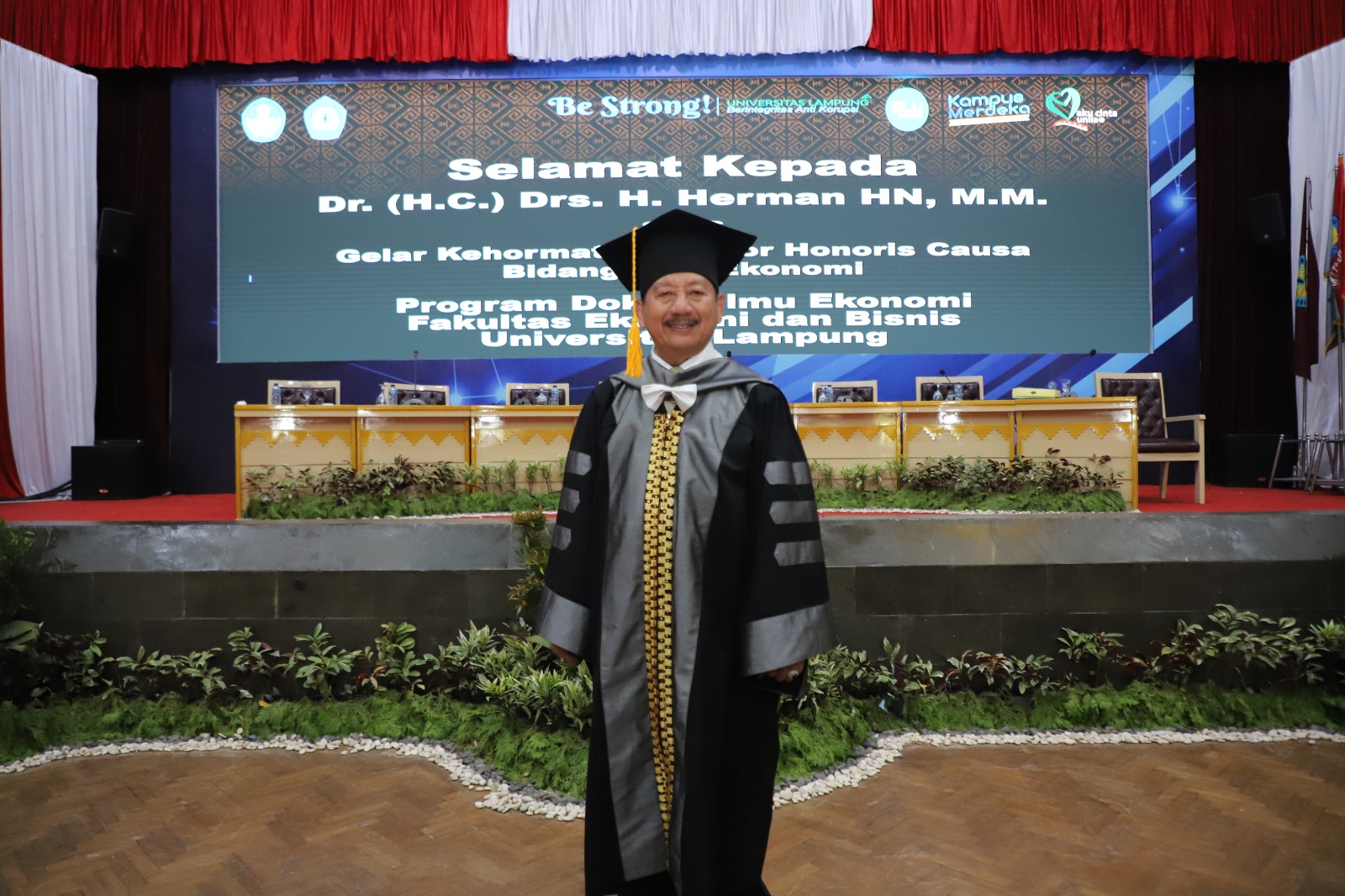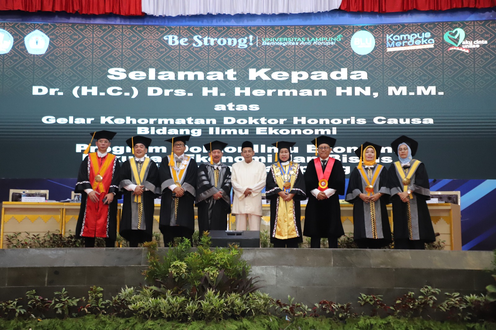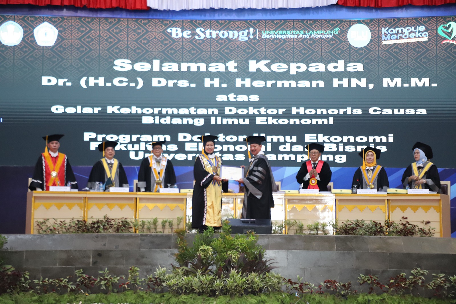 Herman Hasanusi diberikan gelar Doktor H.C. dalam bidang Ilmu Ekonomi dari Fakultas Ekonomi dan Bisnis (FEB) Unila sebagai pengakuan atas kontribusinya selama masa jabatannya dalam memajukan pembangunan untuk kesejahteraan rakyat.