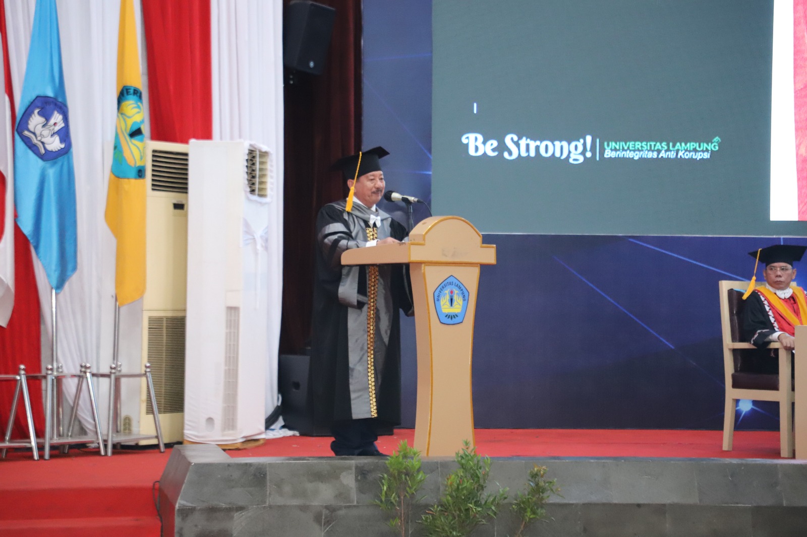 Sidang Promosi dimulai dengan pembukaan oleh Rektor Unila Prof. Dr. Ir. Lusmeilia Afriani, D.E.A., IPM., ASEAN Eng. Selanjutnya, Herman Hasanusi sebagai promovendus, memberikan presentasi terkait karya ilmiahnya dengan judul “Pembangunan untuk Kesejahteraan Rakyat” di hadapan Komisi Penguji.
