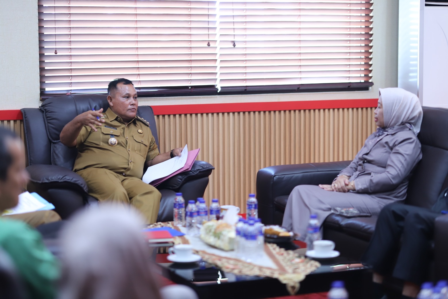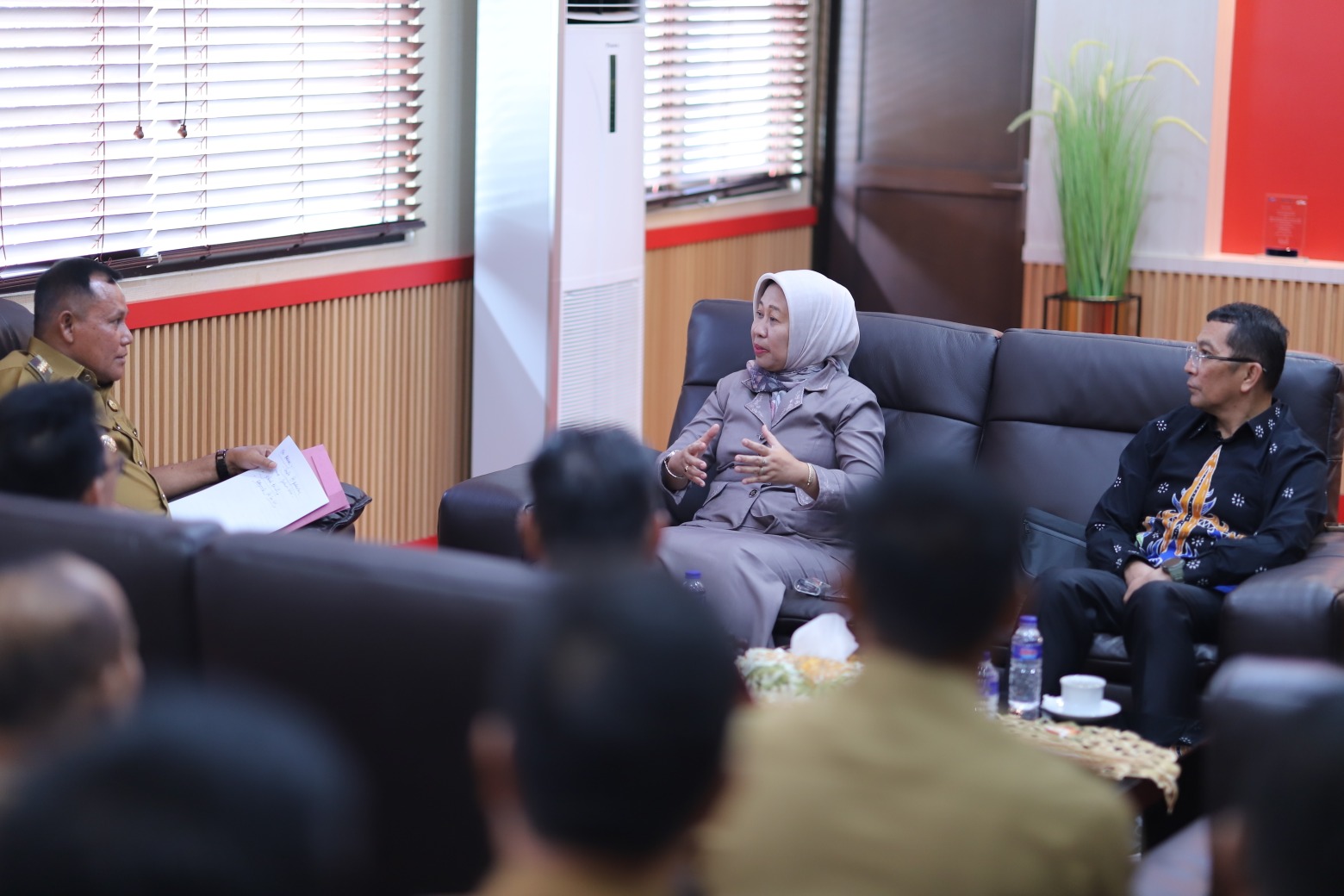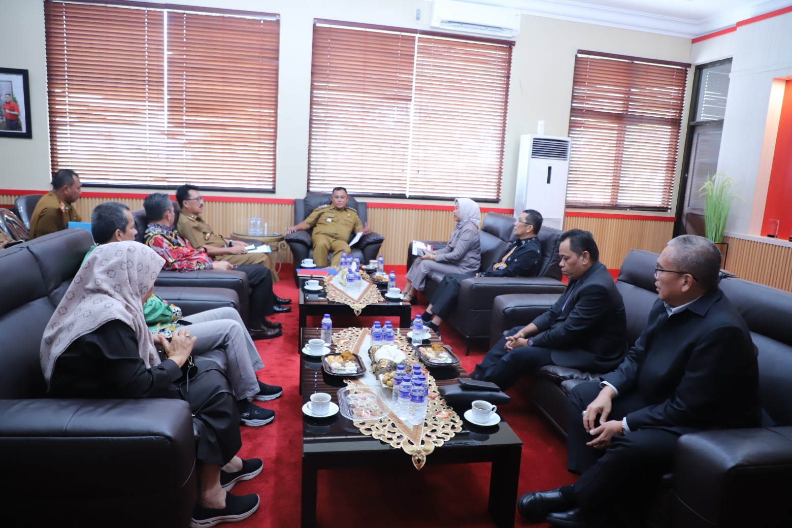 (Unila): Rektor Universitas Lampung (Unila) Prof. Dr. Ir. Lusmeilia Afriani, D.E.A., IPM., ASEAN Eng., didampingi Ketua LPPM, Ketua LP3M, Dekan FT, Dekan FMIPA, Ketua SPI, dan Kepala BUK menggelar audiensi ke ruang kerja Bupati Lampung Selatan, Selasa, 27 Februari 2024.