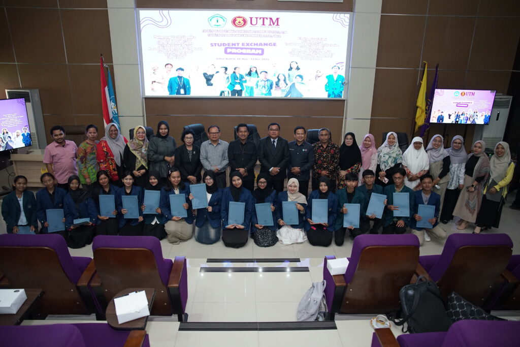 (Unila): Fakultas Keguruan dan Ilmu Pendidikan (FKIP) Universitas Lampung (Unila) menyelenggarakan upacara pembukaan program Student Exchange ke Universiti Teknologi Malaysia (UTM) di Aula A Dekanat FKIP Unila, Selasa 25 November 2025.
