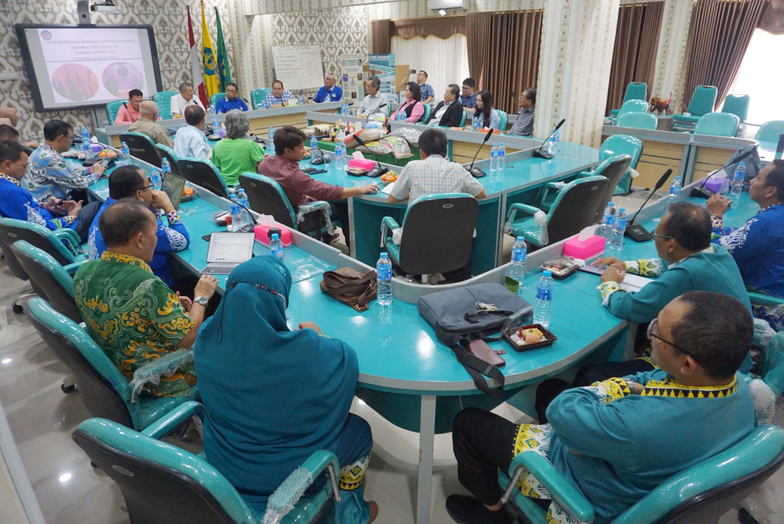 (Unila): Universitas Lampung (Unila) menyambut kehadiran Thai Tapioca Starch Association dan Thai Tapioca Association dari Thailand di ruang rapat Dekanat Fakultas Pertanian Unila, Kamis, 19 Oktober 2023.