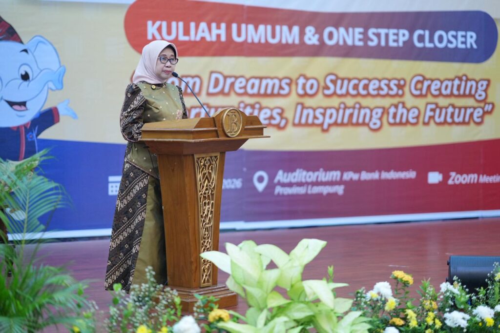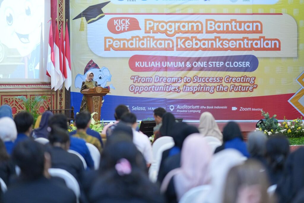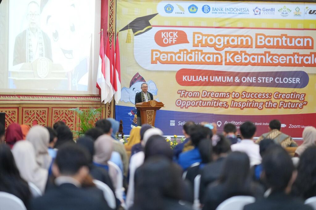 (Unila): Rektor Universitas Lampung (Unila) menghadiri acara kuliah umum dan one step closer program bantuan pendidikan kebanksentralan dengan tema “From Dreams to Success: Creating Opportunities, Inspiring the Future”, sekaligus penandatanganan perjanjian kerja sama, pada Selasa, 14 April 2026, di Bank Indonesia, Lampung.