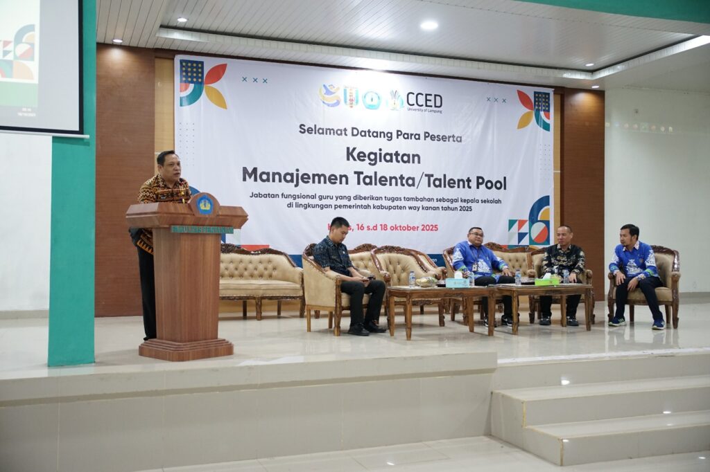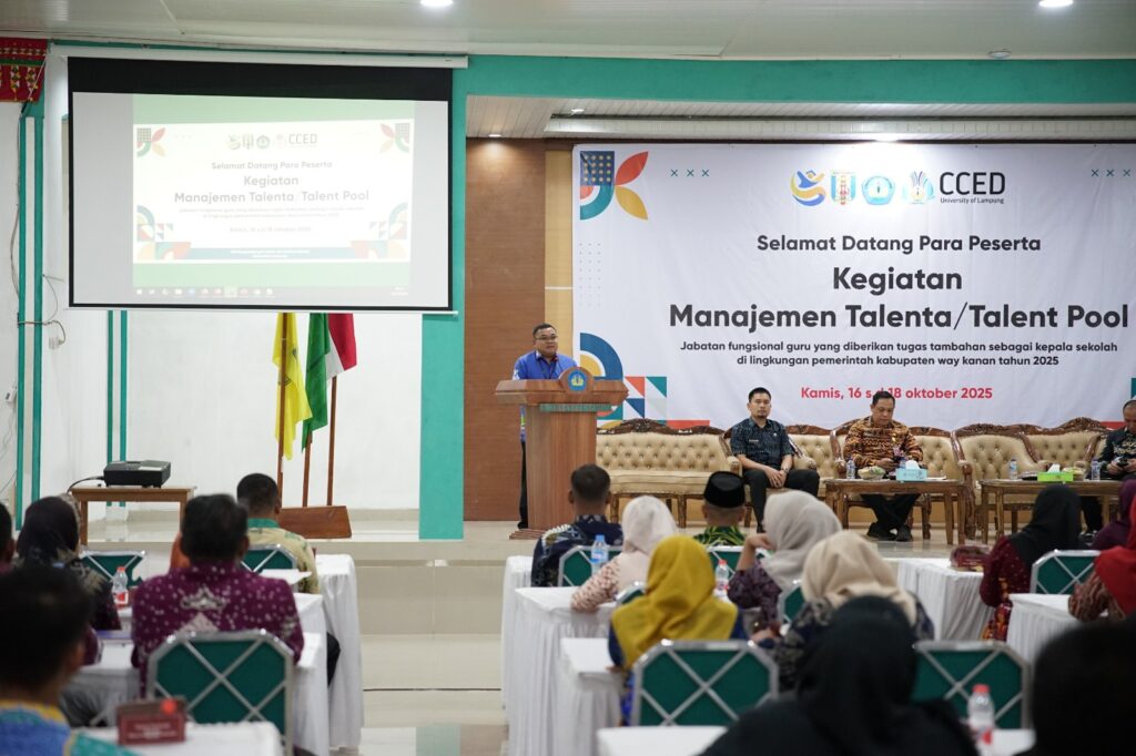 (Unila); Fakultas Pertanian (FP) Universitas Lampung (Unila) menjadi tempat pelaksanaan kegiatan Manajemen Talenta Way Kanan khusus untuk pejabat fungsional yang memegang tugas tambahan sebagai kepala sekolah, Kamis, 16 Oktober 2025.