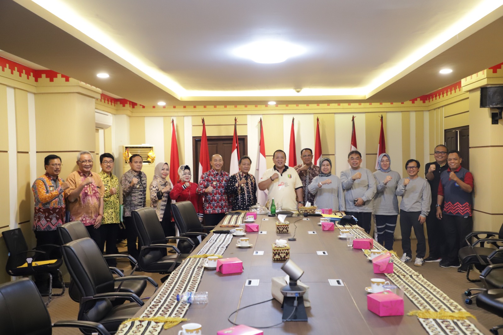 (Unila): Rektor Universitas Lampung (Unila) Prof. Lusmeilia Afriani, D.E.A., IPM., Asean. Eng., bersama dengan jajaran wakil rektor dan ketua lembaga, mengadakan dialog dan diskusi dengan Gubernur Lampung Arinal Djunaidi, untuk membahas hibah lahan kampus Unila Kota Baru, Jumat, 18 Agustus 2023.