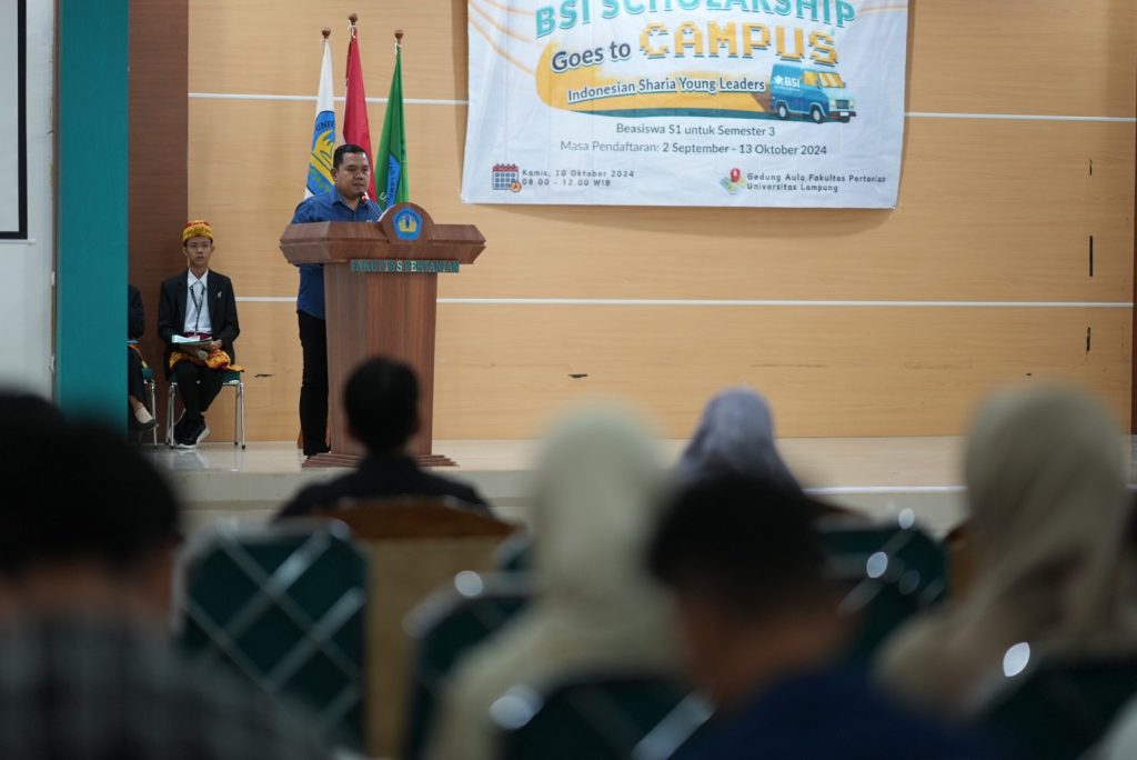 Kegiatan diselenggarakan di Gedung Aula Fakultas Pertanian (FP) Unila, pada Kamis, 10 Oktober 2024. BSI Scholarship merupakan program beasiswa yang bertujuan membentuk Sharia Young Leader melalui dua jenis beasiswa, yaitu BSI Inspirasi dan BSI Prestasi.
