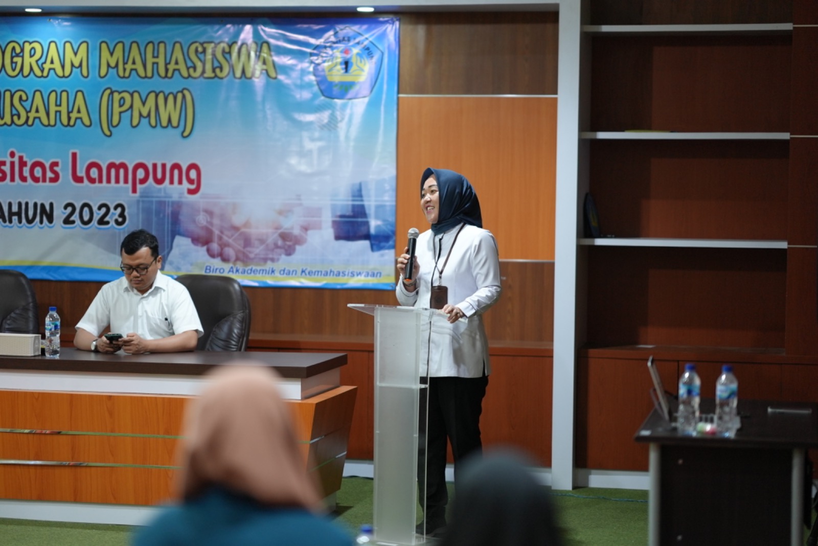 Wakil Rektor Bidang Kemahasiswaan dan Alumni Unila, Dr. Anna Gustina Zainal, S.Sos., M.Si., dalam sambutannya mengatakan, pemberian bantuan PMW merupakan salah satu bentuk dukungan Unila terhadap kegiatan mahasiswa di bidang kewirausahaan. Ia juga mengapresiasi peningkatan jumlah proposal yang dibiayai tahun ini dari tahun sebelumnya.