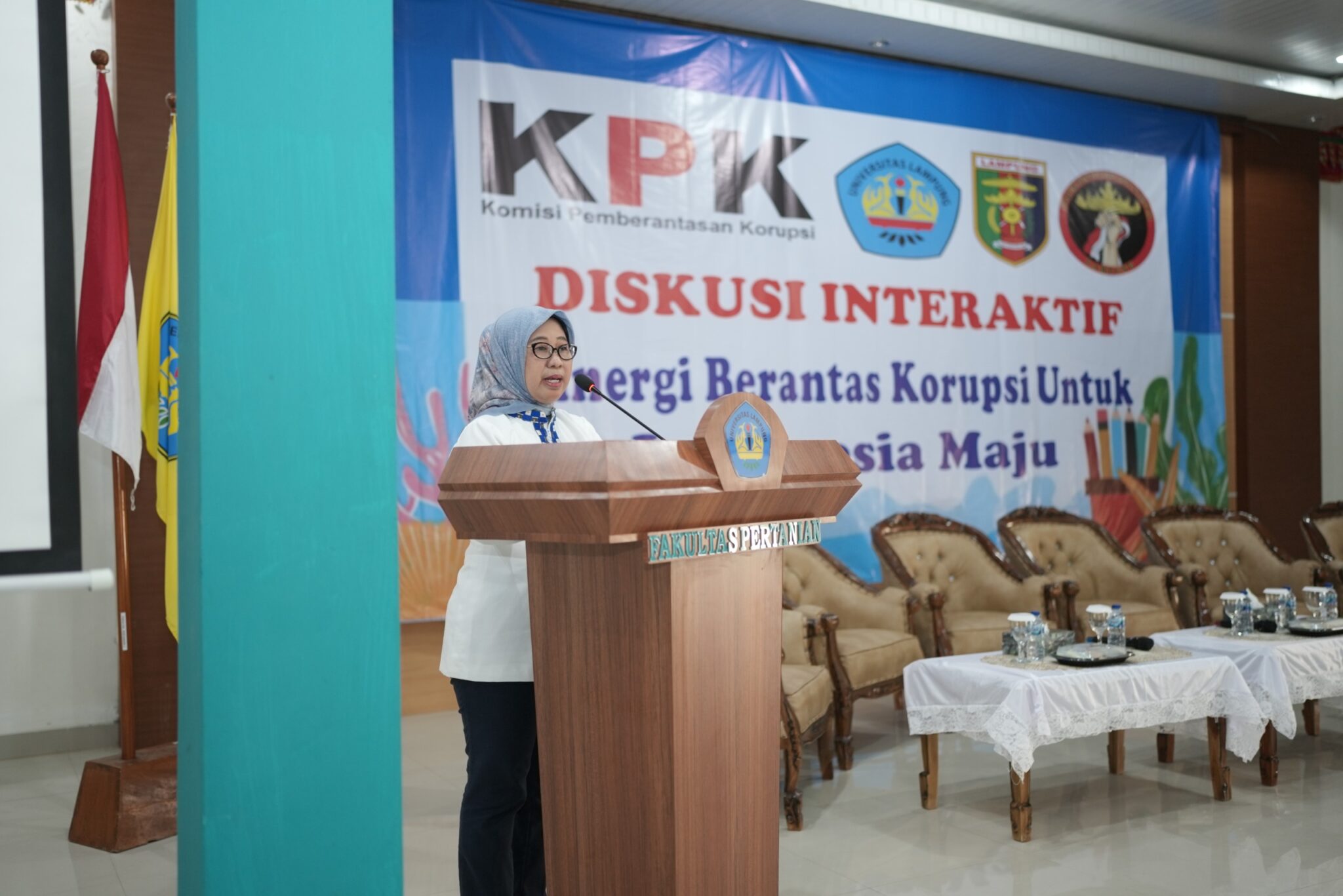 (Unila): Universitas Lampung (Unila) bersama Forum Penyuluh Antikorupsi Provinsi Lampung sukses menyelenggarakan Diskusi Interaktif Antikorupsi, bertajuk “Sinergi Berantas Korupsi untuk Indonesia Maju”. Kegiatan berlangsung di Aula Fakultas Pertanian (FP) Unila, pada Rabu, 6 Desember 2023.