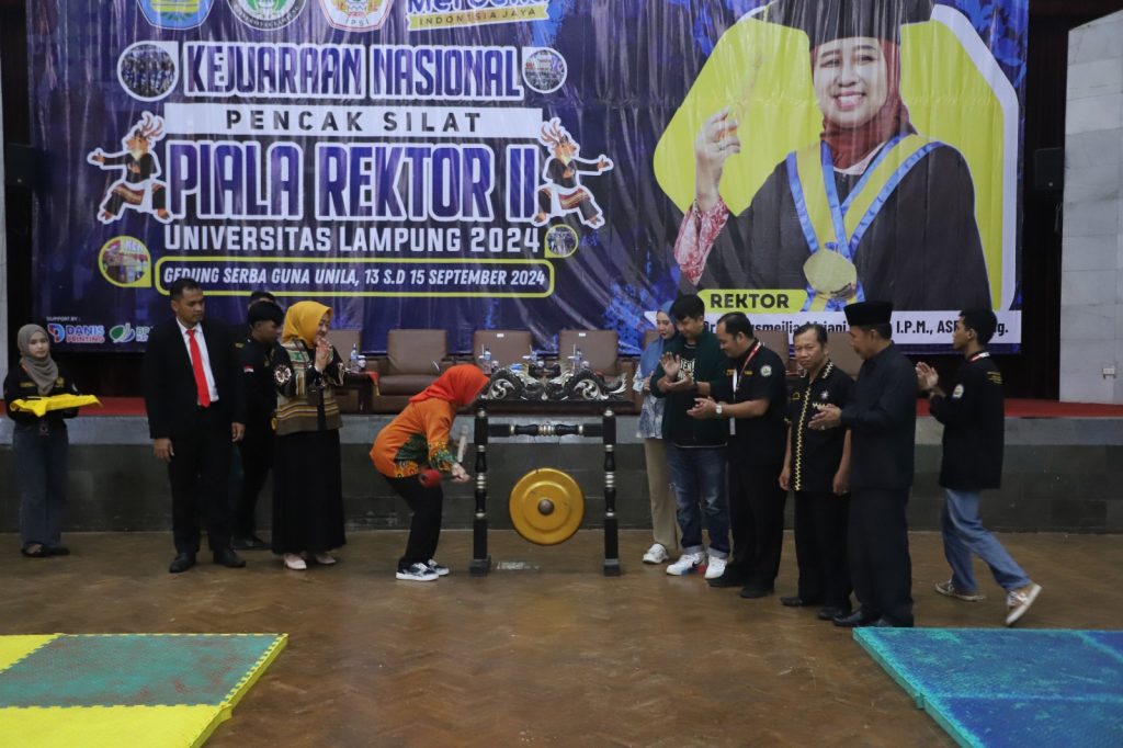 (Unila): Universitas Lampung (Unila) menyelenggarakan Kejuaraan Nasional (Kejurnas) Pencak Silat Piala Rektor II Universitas Lampung Tahun 2024. Kegiatan bertema “Junjung Tinggi Suportivitas” ini berlangsung di Gedung Serbaguna Unila, 13-15 September 2024.